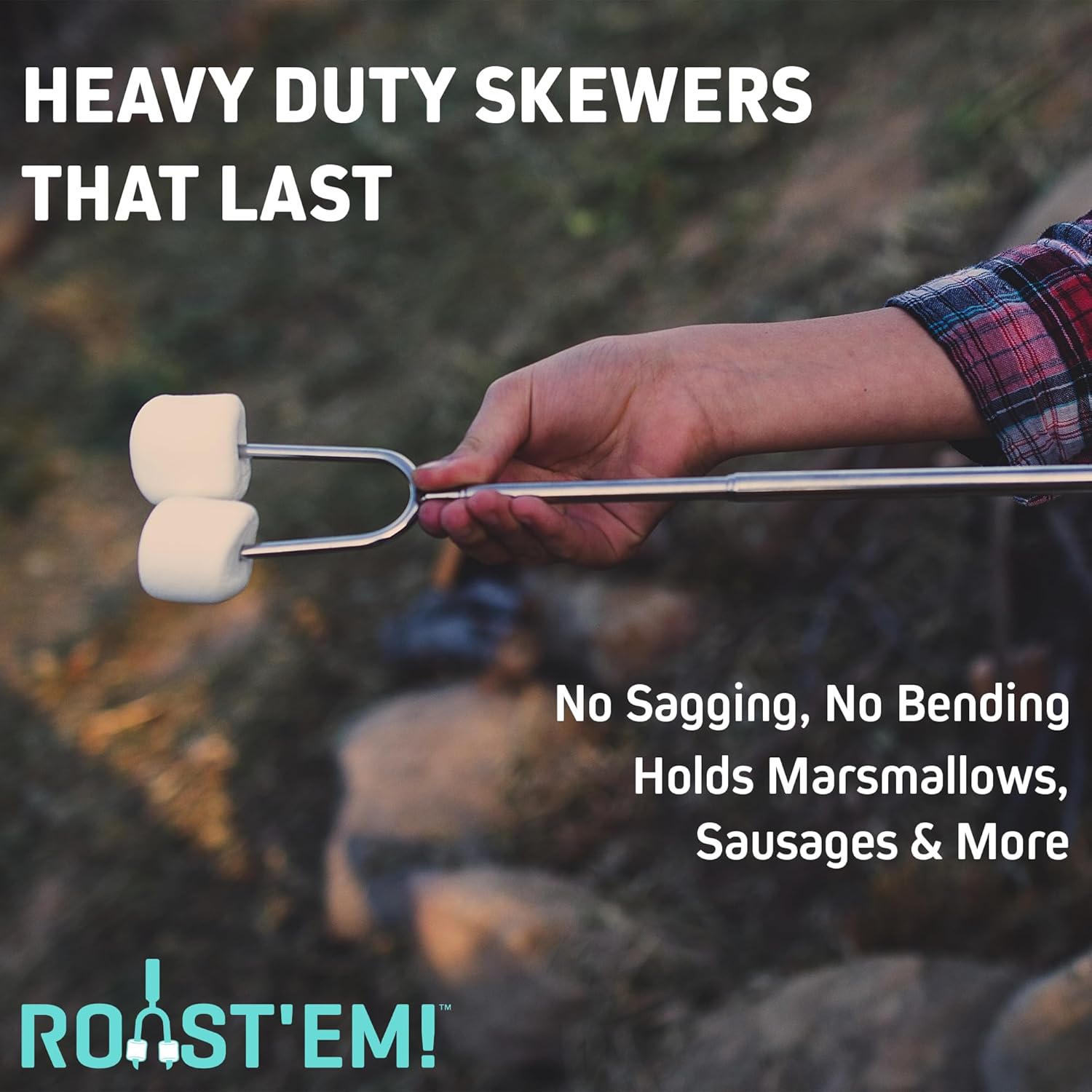 - HEAVY-DUTY! Our stainless-steel skewers are built to last. Made with durable metal and wooden handles. No more dirty twigs or disposable bamboo skewers! Our marshmallow sticks for fire pit can hold the weight of a hot dog or sausage, unlike other brands.