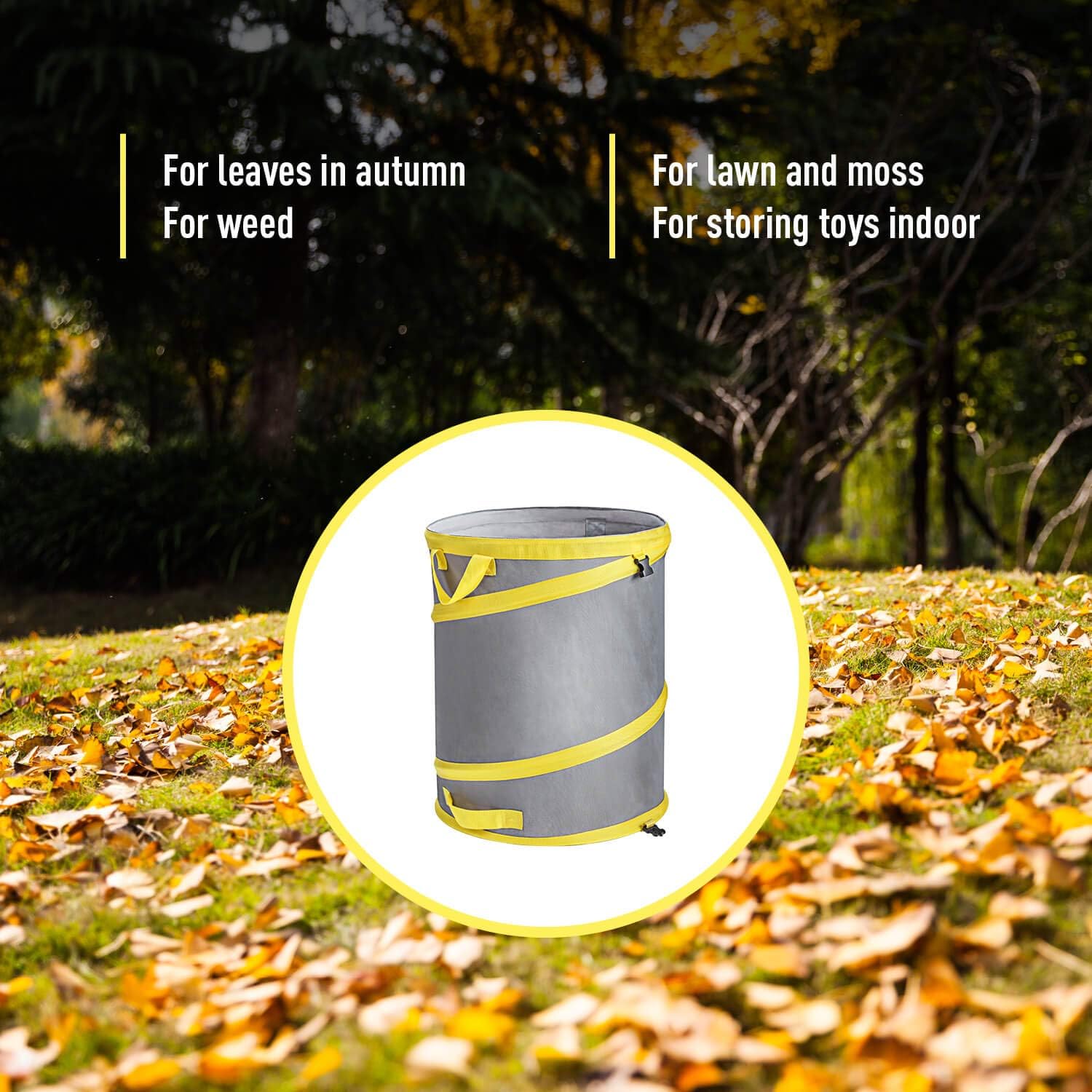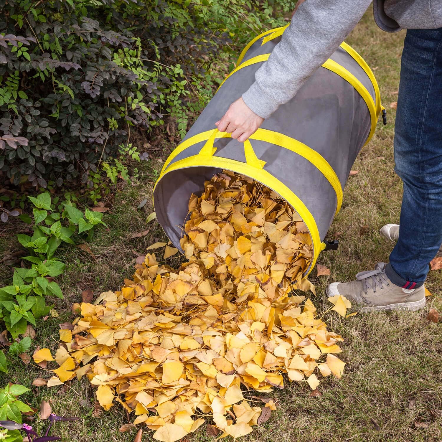 - SMART POP UP DESIGN: Pop up garden bag has a flexible yet hard spiral spring spine that allows it to automatically pop up. And the leaf bag can be folded, it can be hanged on the wall or store in crowded garage or shed