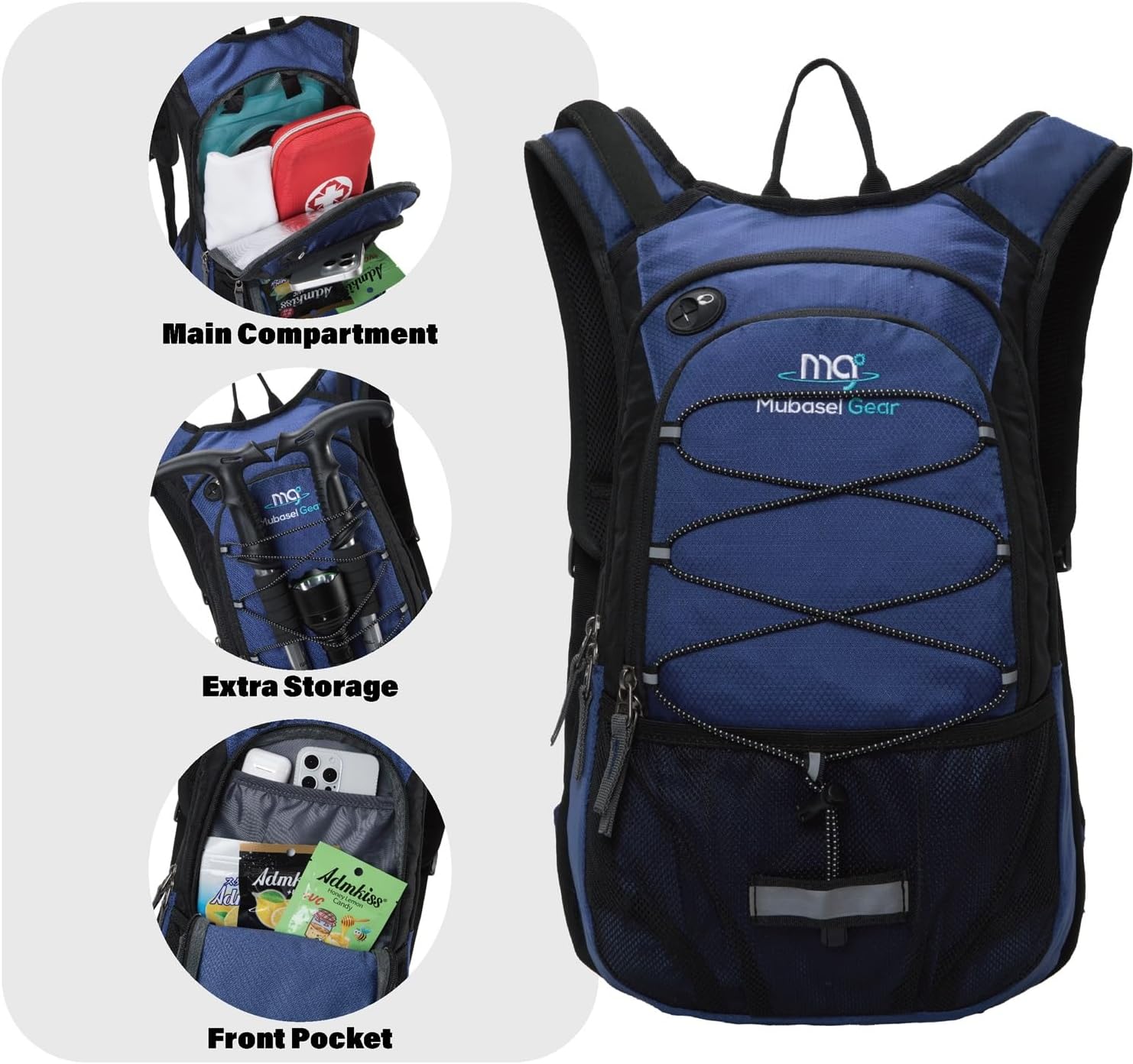 - GOOD VOLUME & STORAGE: This hydration backpack includes 3 spacious compartments for all your essentials. Store your clothes, keys, phone, and even a purse! The front stretch mesh pockets give you extra room to carry gear without sacrificing comfort.