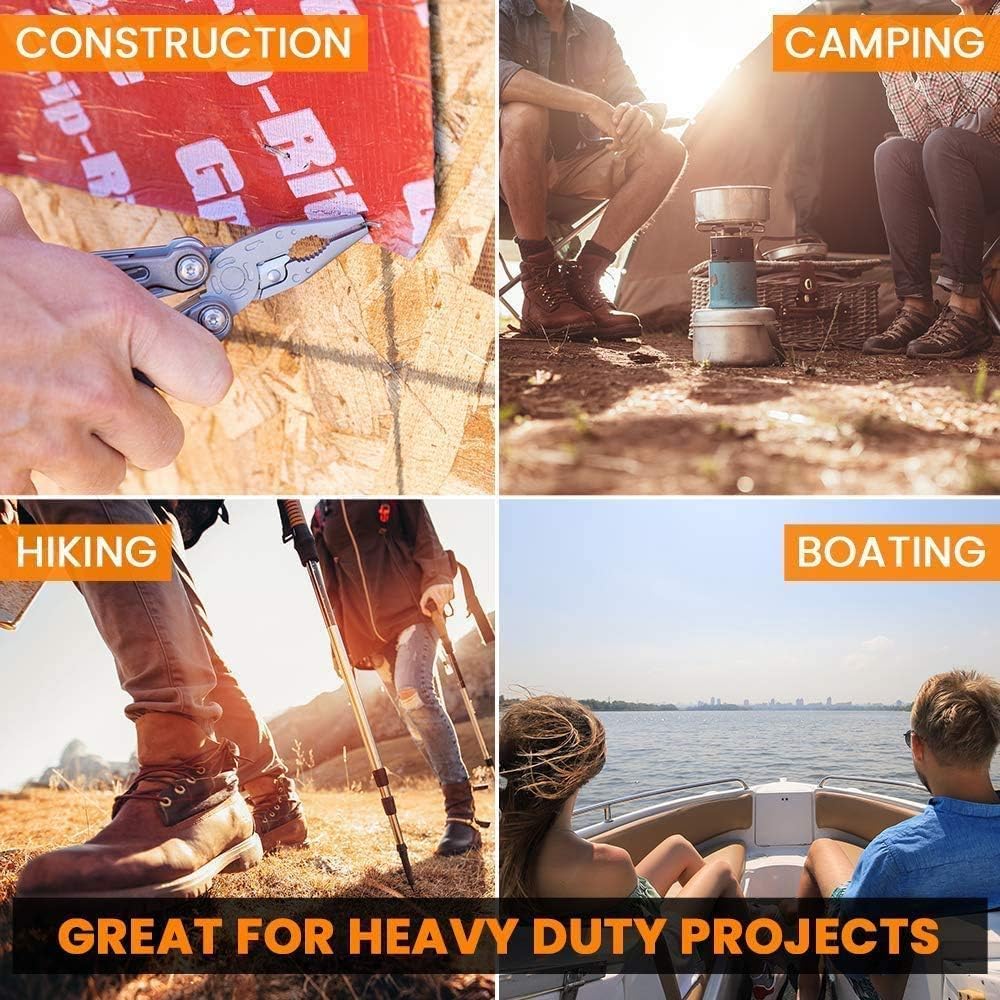 15-in-1 Multitool Pocket Knife, Multipurpose Stainless Steel All In One Tool for Camping Hiking Survival Travel Home - Portable Heavy Duty Folding Utility Multi Tool with Self-Locking
