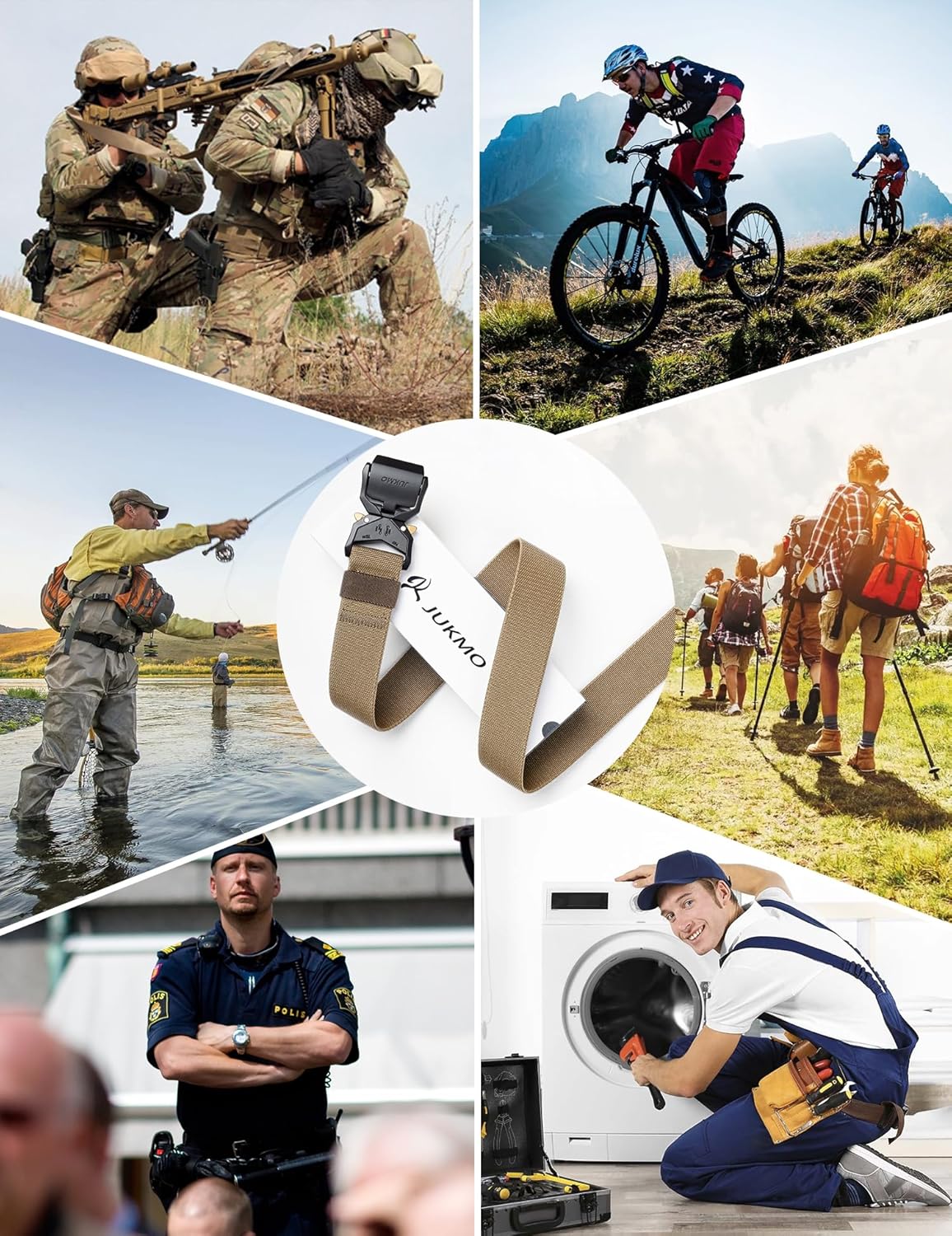 • HIGH QULITY STRETCH NYLON:We intent to make the strap be stretch. The strap is made by special stretch material which is more solid than regular belt. More than that, it is very sturdy as well as stretch, which make your waist be more comfortable as well as stay tight, when you take large range of activities. Anyone who do physical activities for a long period of hours will get a great use out of the tactical belt