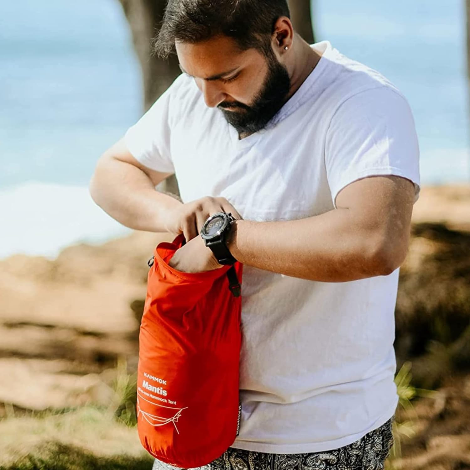 KAMMOK Mantis Ultra Light Hammock, All Seasons, Mosquito Net, Storage Bag, Camping, Outdoor Activities - Ember Orange