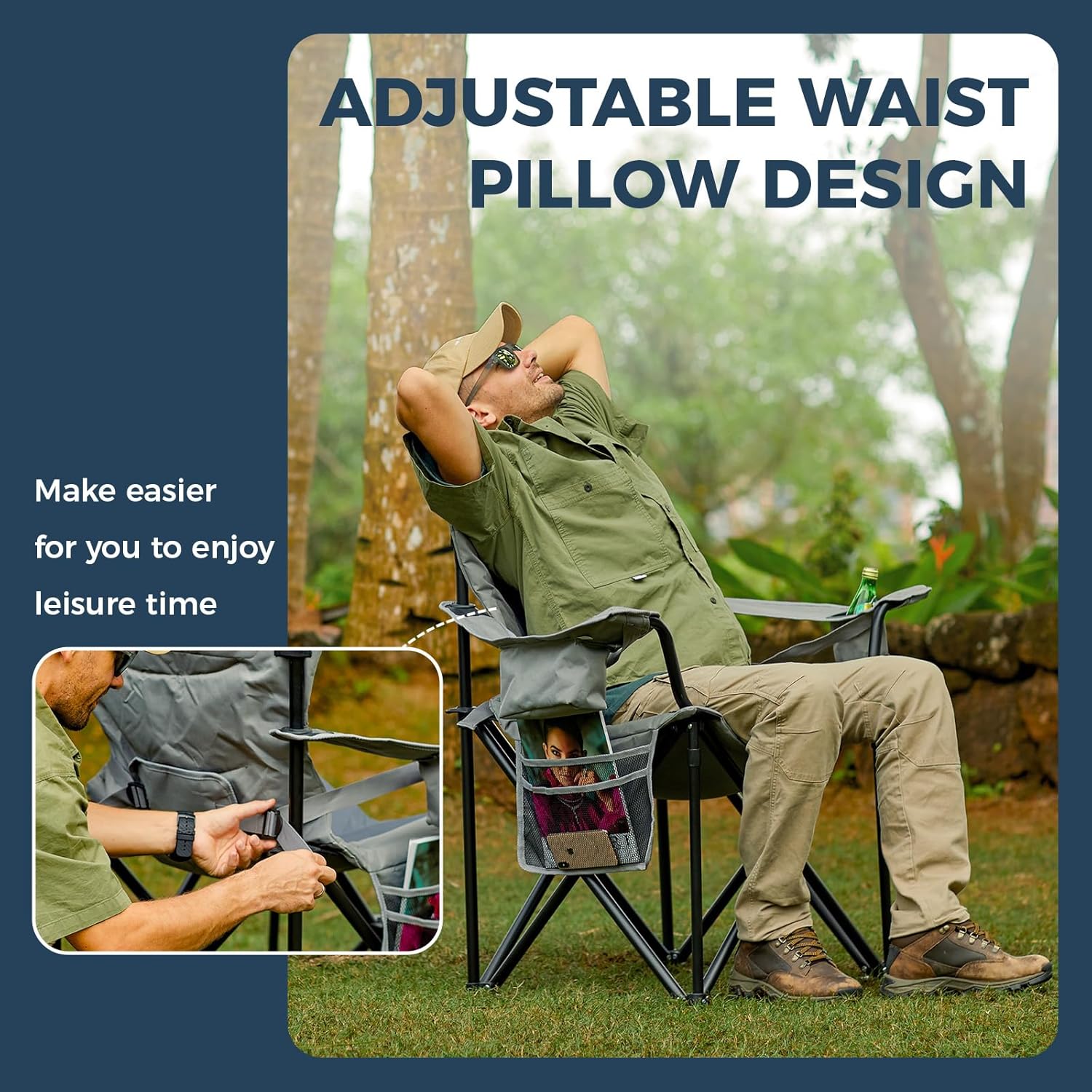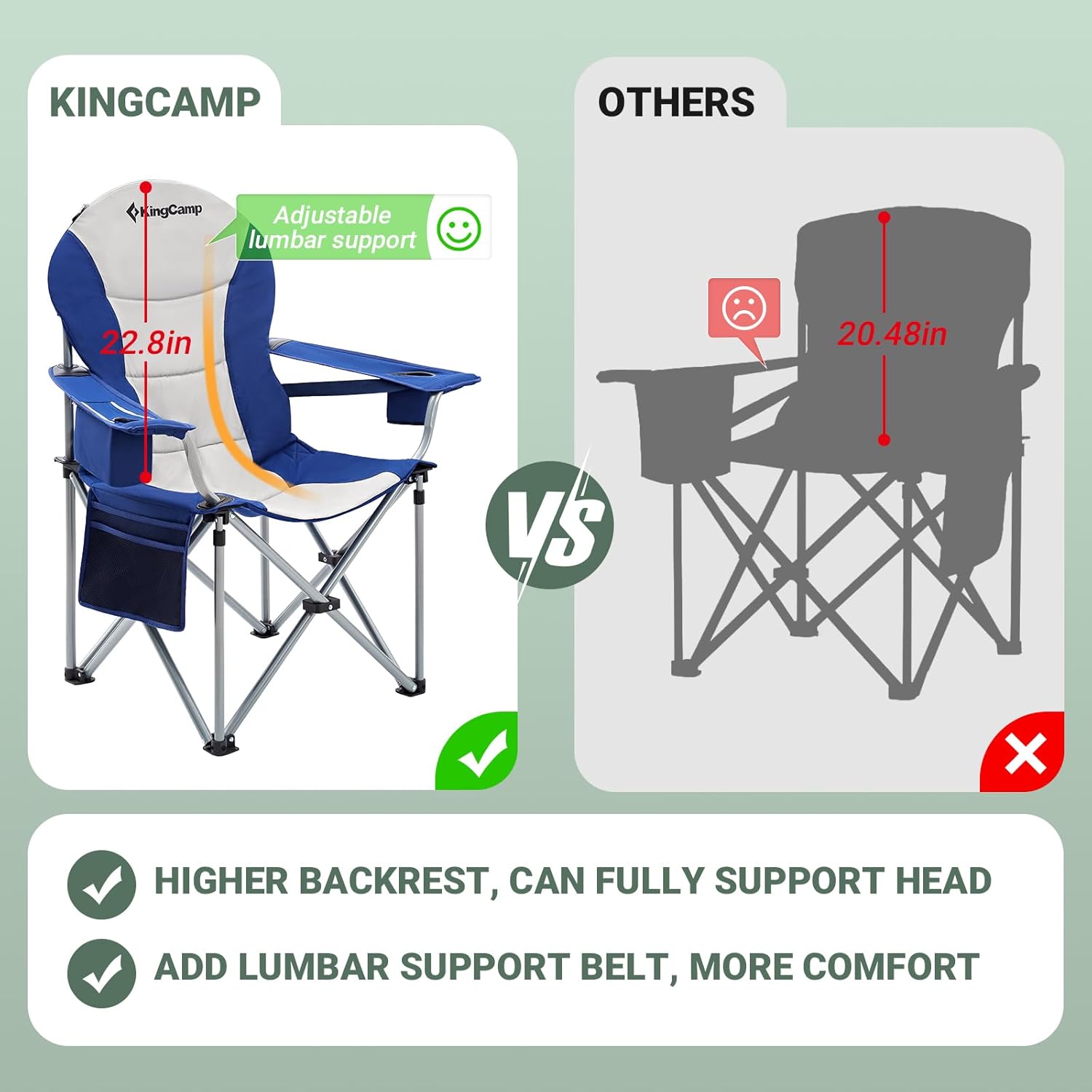 KingCamp Oversized Camping Folding Chair with Lumbar Support, Heavy Duty Ergonomic Padded Arm Chair with Cooler Bag, Cup Holder, Portable for Outdoor
