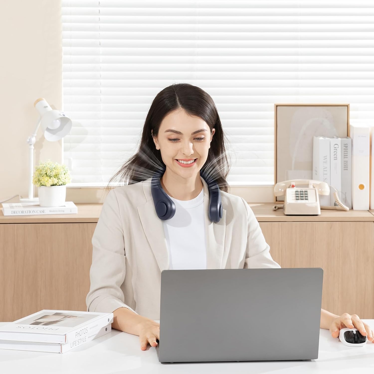 - 【Safety & 78 Air Outlets】 A novel neck fan that can send the wind without waving your hands by simply placing it on your neck.Designed without wings, it can be used safely by children and the elderly. With 78 air outlets around the neck, it can be used for the entire face around, which products enough air to keep you cool always. It is also nice as a companion for working in hot weather.