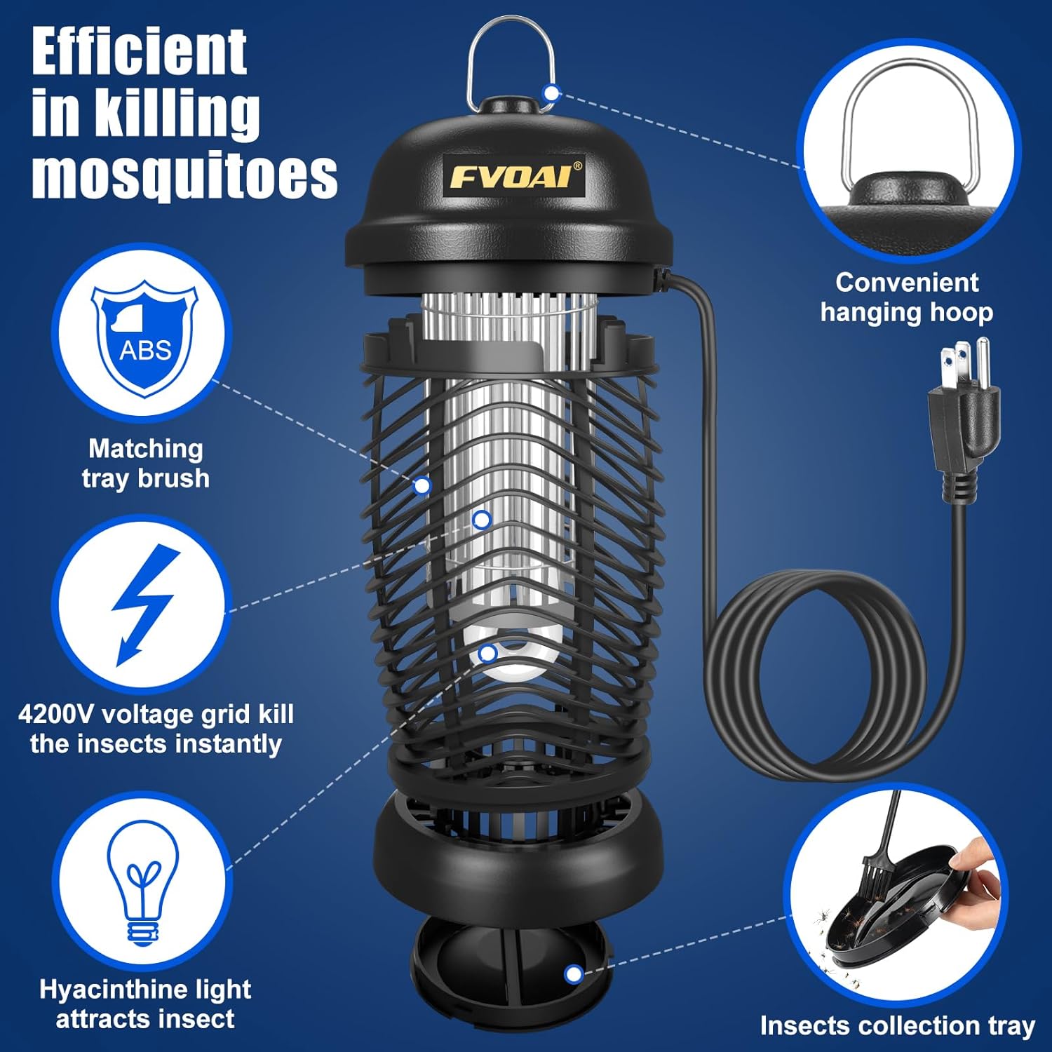 - Easy to hang & 4.9 Ft power cord: Fly zapper outdoor is equipped with a hanging ring, making it easy to install and place in various outdoor environments. Simply plug it in, and electric mosquito zapper can starts working immediately