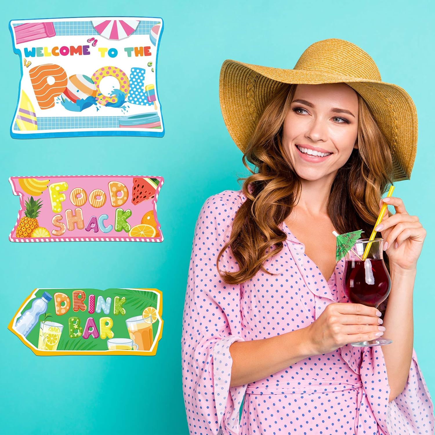 - Stylish design: the welcome directional sign are printed with assorted pool party theme signs, like drink bar, swim, watermelon etc., the words in big fonts are easy and clear for you to notice and read; Featured with bright color and cute pattern, which well adorn your house and convey the pleasant festive atmosphere effectively