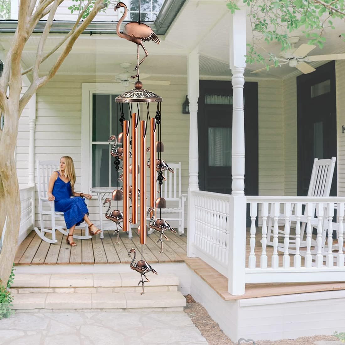 - 🦩【Nature's Melody】Our flamingo wind chimes are purely handmade, Outdoors windchimes whole is made of high-quality aluminum, and the surface is copper-plated to make it more natural. Each round metal aluminum tube has a strict size to grasp the accuracy of the tone, let the rhythm of the pink flamingo wind chimes surround your ears, and enjoy the embrace of nature