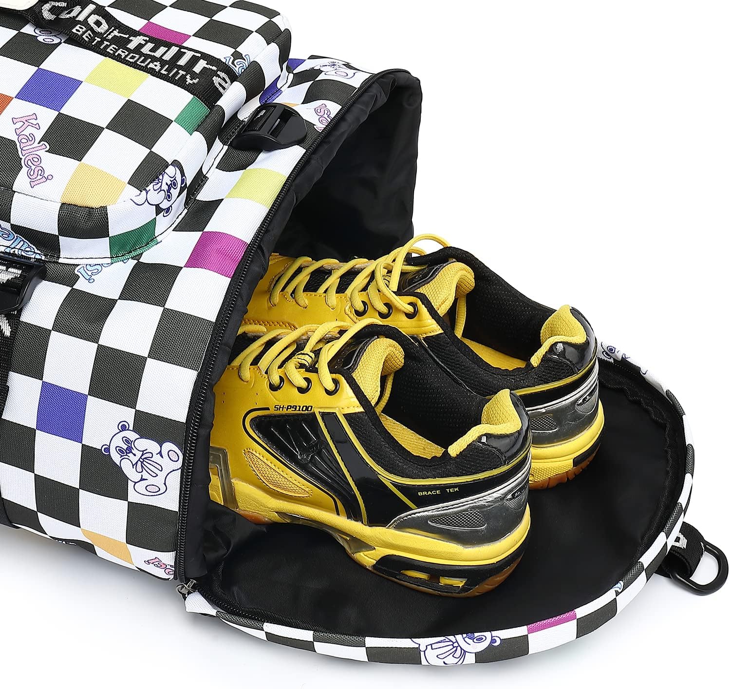 Kalesi Gym Duffle Bag Backpack 4-Way Waterproof with Shoes Compartment for travel Sport Hiking laptop (Checkerboard)