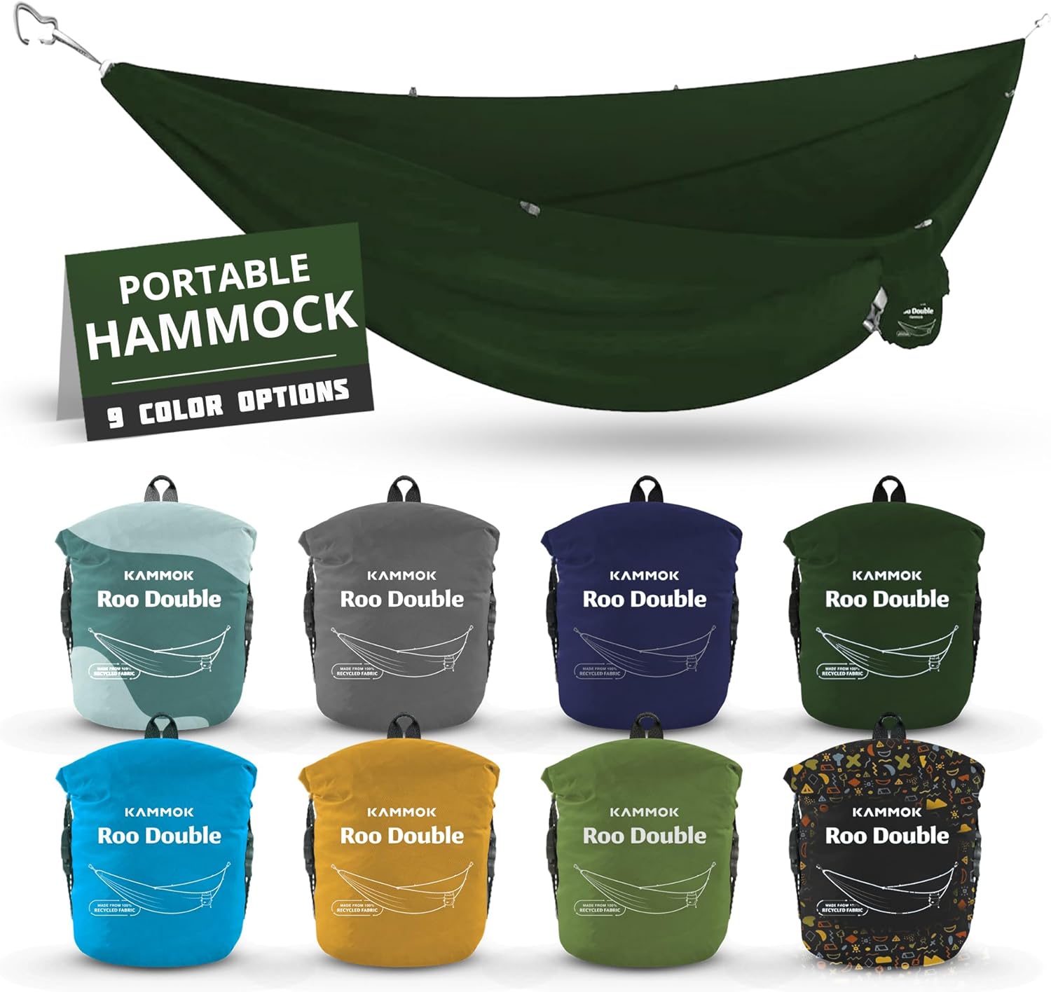 KAMMOK: Roo Double Hammock | Made from Strong & 100% Recycled Water Resistant Ripstop Fabric | Comfortable, Packable, Lightweight (Lifetime Adventure Grade Warranty), Pine Green