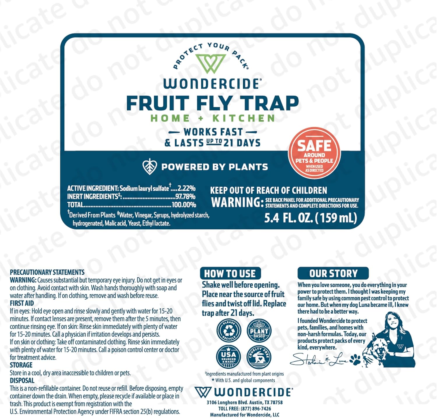 Wondercide - Fruit Fly Traps for Indoors - Fruit Fly Killer - Pet and People Safe - Made in USA & Plant Based - 5.4 oz - 2 Pack