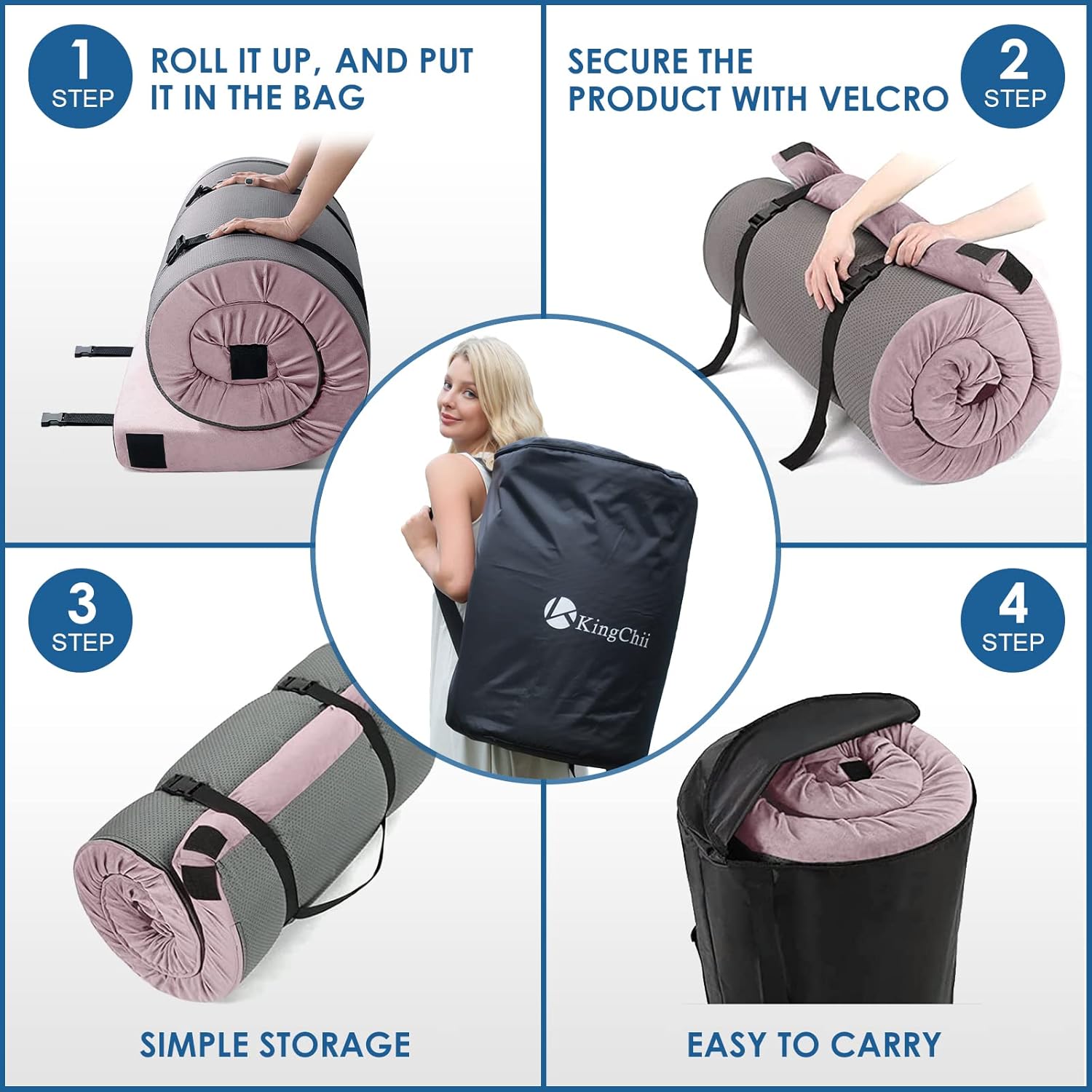 KingChii CertiPUR-US Memory Foam Camping Mattress, Portable Roll Up Travel Car Camping Mattress Sleeping Pad & Floor Mattress, Cot Mattress Guest Bed for Sleepover with Waterproof Cover & Travel Bag