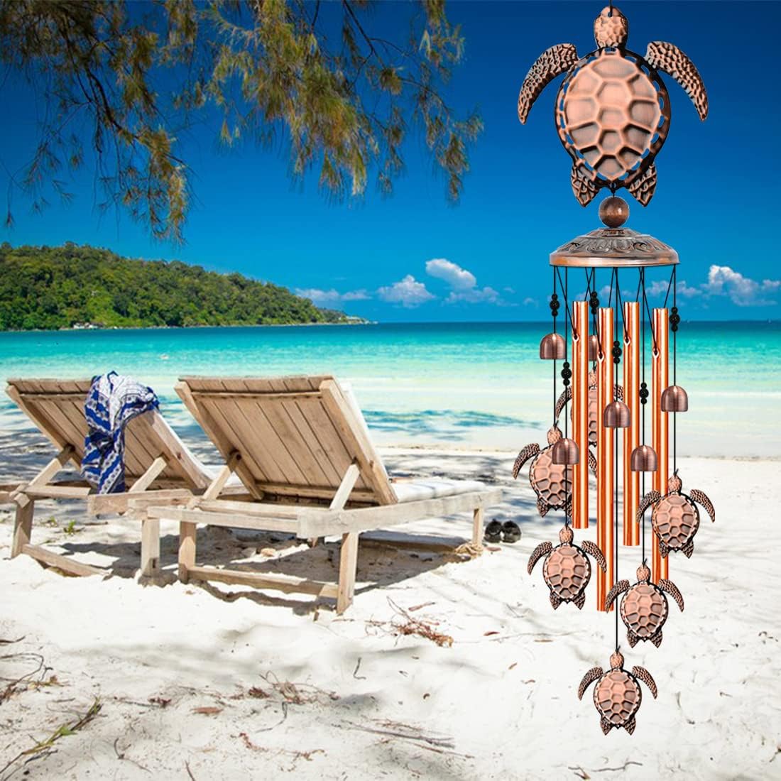 - đ˘ăNature's MelodyăOur sea turtle wind chime are purely handmade, metal windchimes whole is made of high-quality aluminum, and the surface is copper-plated to make it more natural. Each round metal aluminum tube has a strict size to grasp the accuracy of the tone,let the rhythm of the windchimes outdoors surround your ears, and enjoy the embrace of nature