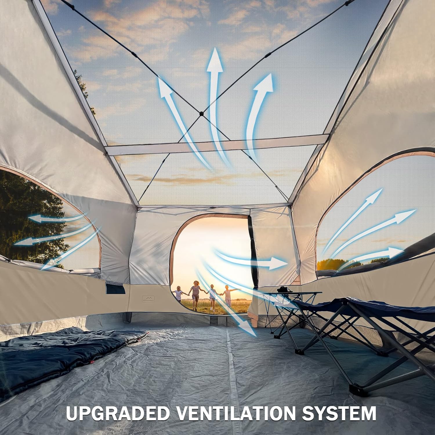 - Thoughtful Design: Our canopy cube tent add-on offers excellent ventilation, ensuring a cool and comfortable environment inside. With 3 large screened windows and an oversized screened door, air flows through freely, aided by a vented roof. The e-ports provide easy access for an extension cord. Plus, there are convenient storage pouches around the perimeter for your belongings