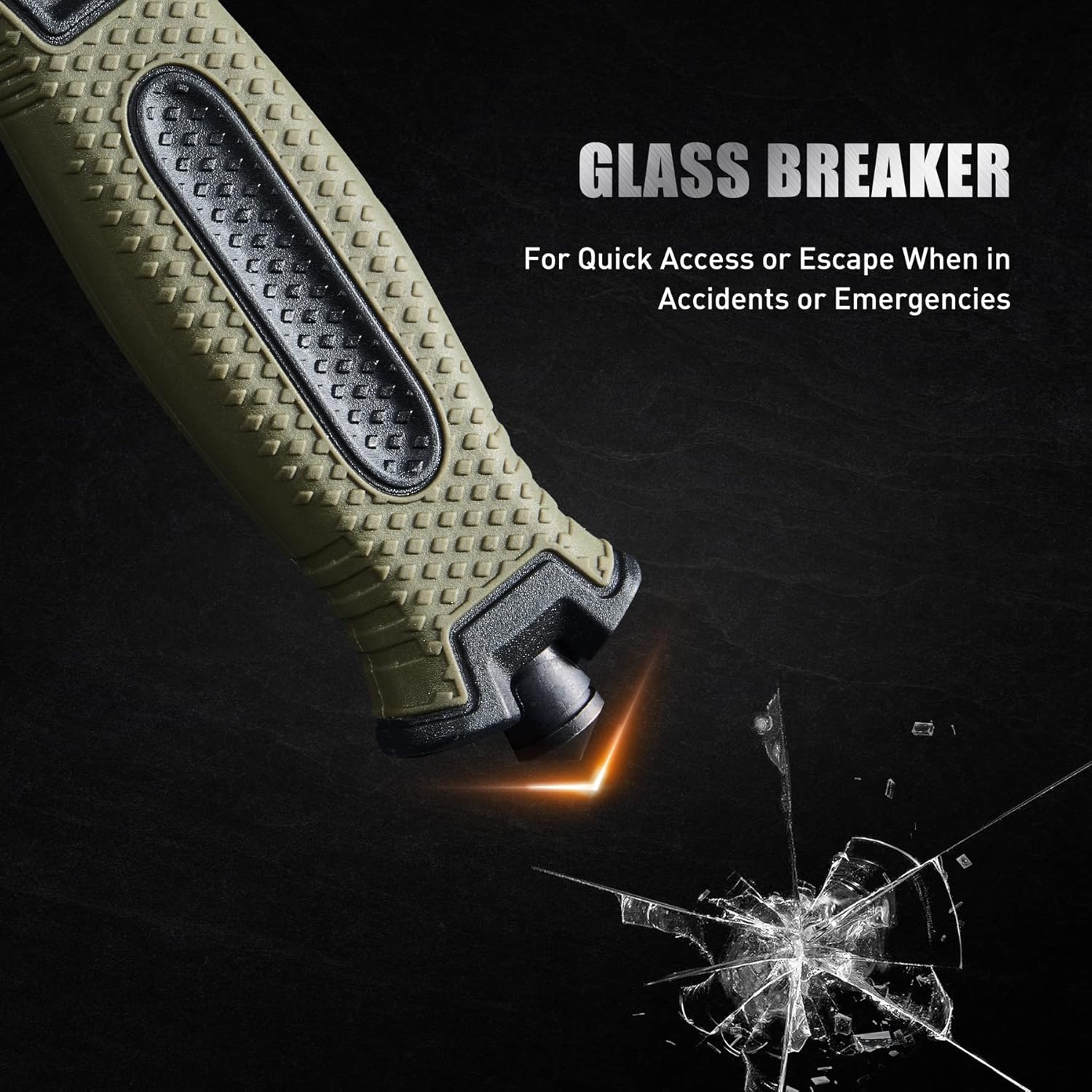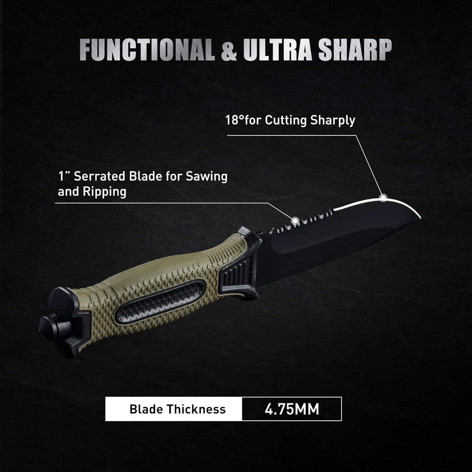 10" Fixed Blade Tactical Knives with Sheath and Clip, Stainless Steel Survival Hunting Bushcraft Full Tang Non-Slip Handle Knife for Camping, Hunting, Adventure, Outdoors, EDC,Military Green