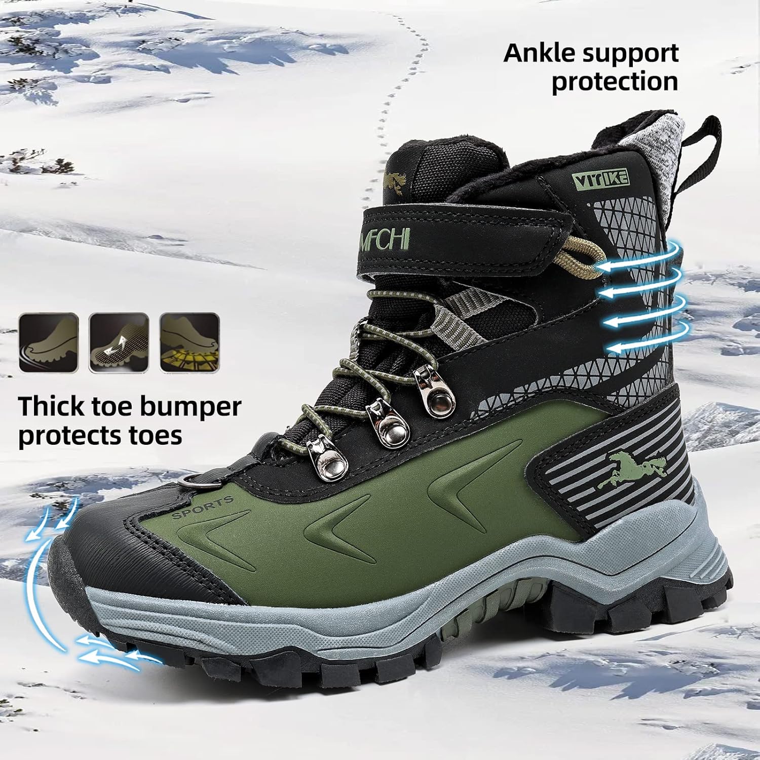 JMFCHI Kids Hiking Boots Boys Girls Outdoor Walking Climbing Sneaker Comfortable Non-slip Snow Shoes Hiker Boot Antiskid Steel Buckle Sole