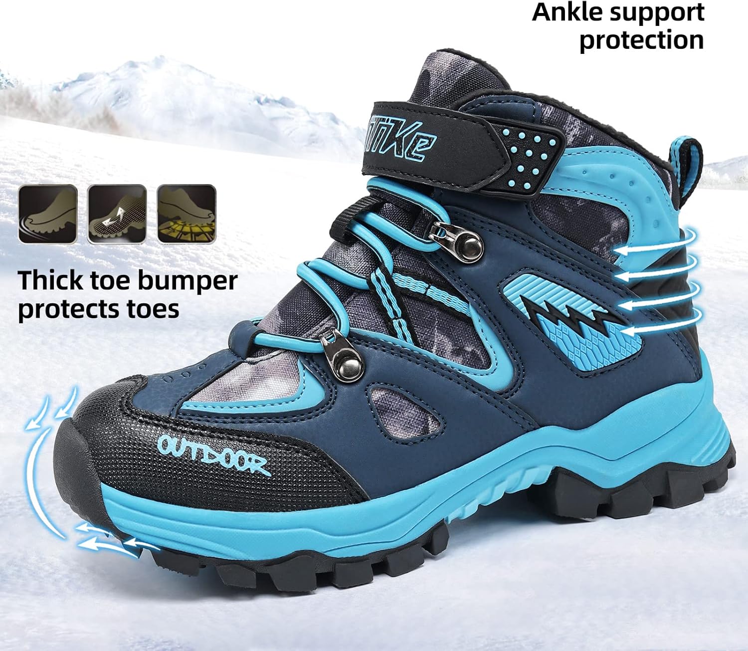 - The rubber soles of hiking boots for kids girls ensure excellent shock absorption, anti-skid technology, excellent heel support, and protect kid's feet and ankles during outdoor sports.