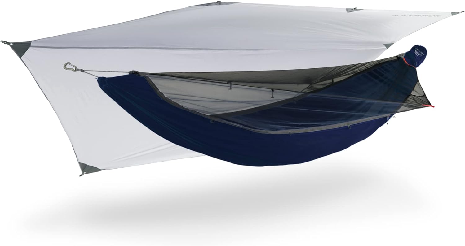 - ALL-WEATHER VERSATILITY: The included rainfly offers maximum protection from wind, rain, snow, and sun. Plus, Mantis’s two compartment stuff sack allows you to tuck the rainfly away separately to keep the rest of your hammock tent dry after a wet night. Mantis’s versatile three-part system allows you to pack what you need and leave the rest at home to save weight and put more miles on the trail.