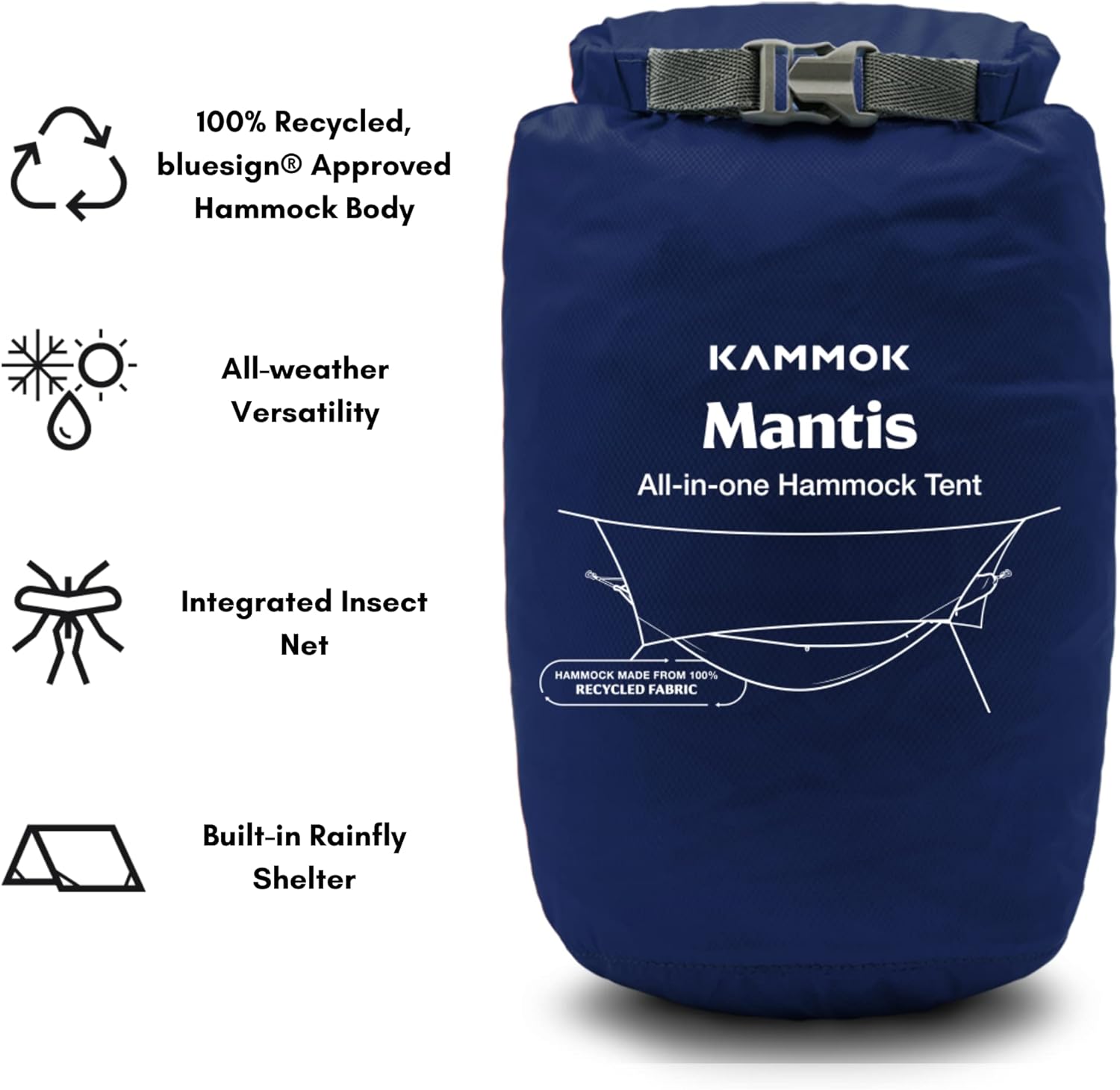 KAMMOK Mantis Hammock, All Seasons, Mosquito Net, Storage Bag, Camping, Outdoor Activities - Midnight Blue