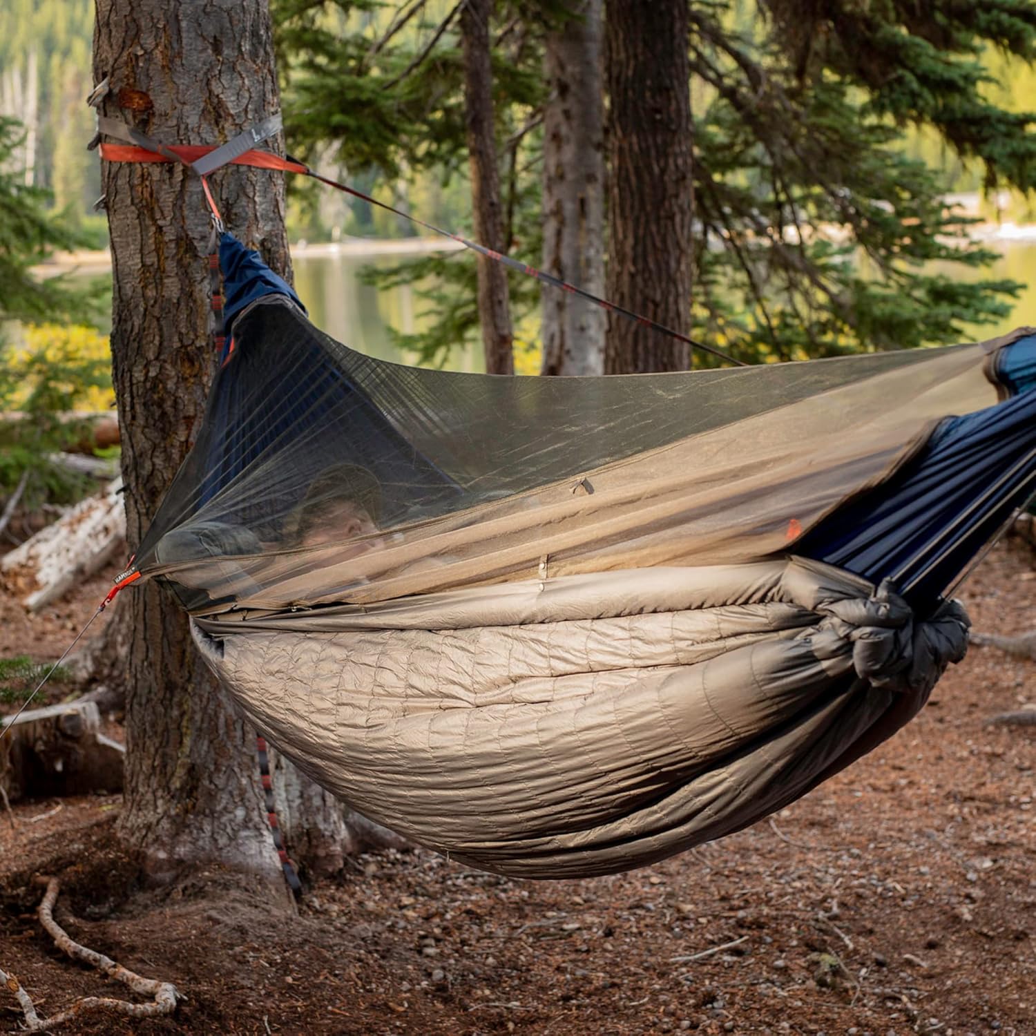 - TRAIL READY: With a 100% recycled, bluesign approved breathable hammock body, INTEGRATED INSECT NET:, and featherlight rainfly, the Mantis all-in-one hammock tent lightens your pack and takes your camping experience off the ground. The Mantis all-in-one hammock system is smaller than your sleeping bag and lighter than a 1-person tent, offering a lightweight respite for hikers on trail.