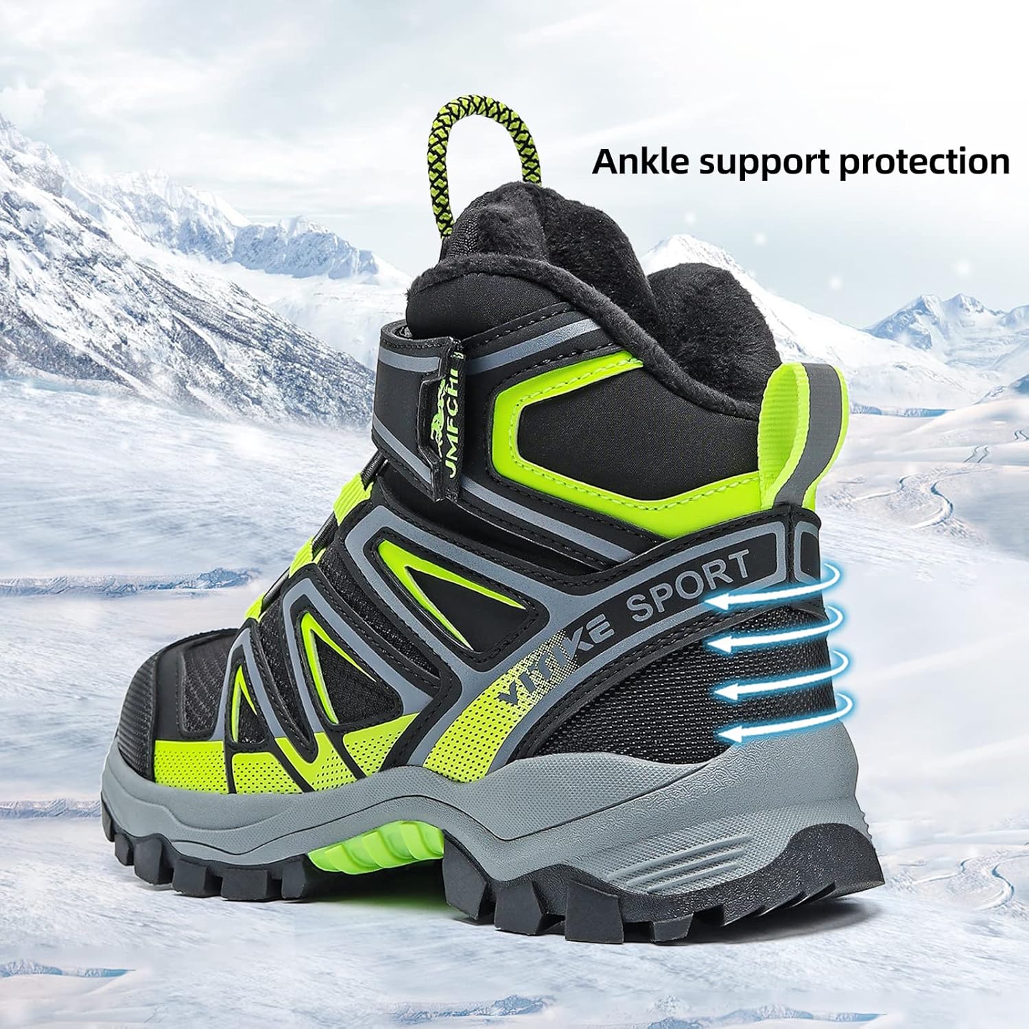 JMFCHI Kids Hiking Boots Boys Girls Outdoor Walking Climbing Sneaker Comfortable Non-slip Snow Shoes Hiker Boot Antiskid Steel Buckle Sole