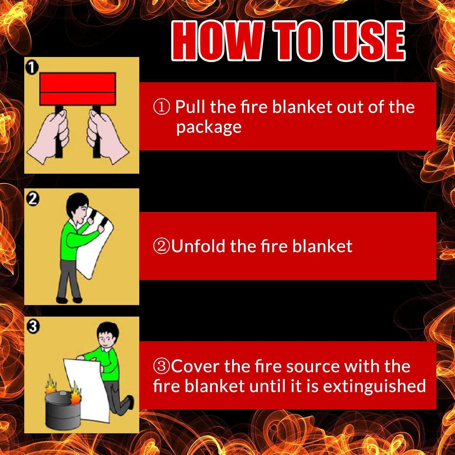 - Easy to Use: simply pull down tabs on the fire blanket kitchen, spread the blanket wide and slowly cover the fire; Let the emergency fire blanket sit there for a few seconds to suffocate the fire, turn off the stove or any heat source