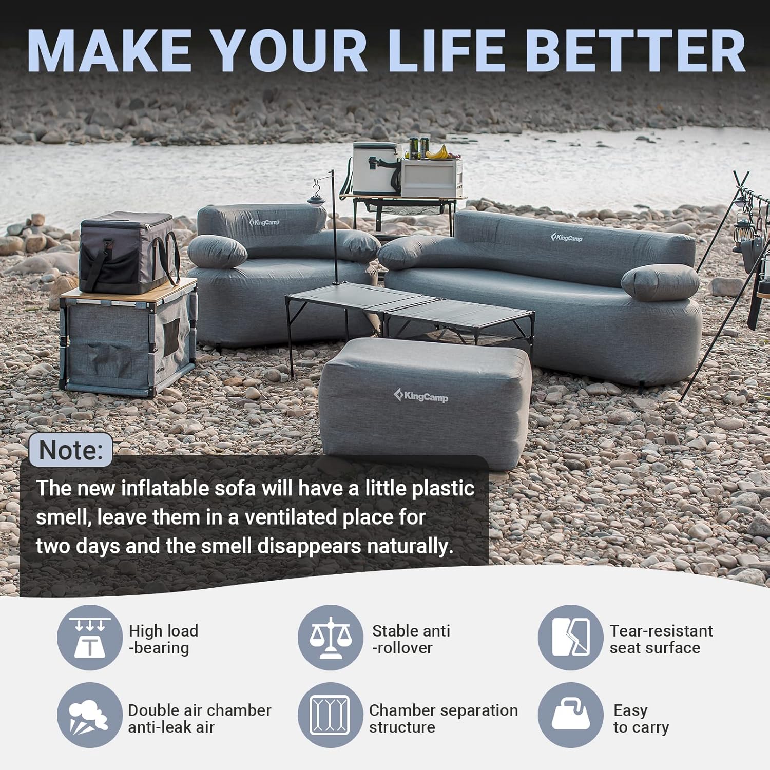 KingCamp Double Inflatable Couch for Camping, Portable Foldable Eco-Friendly Reach-Certified PVC Liner Air Lounger 2-Person Blow Up Sofa with Foot Pump, Pegs, Repair Kit & Removable Cover