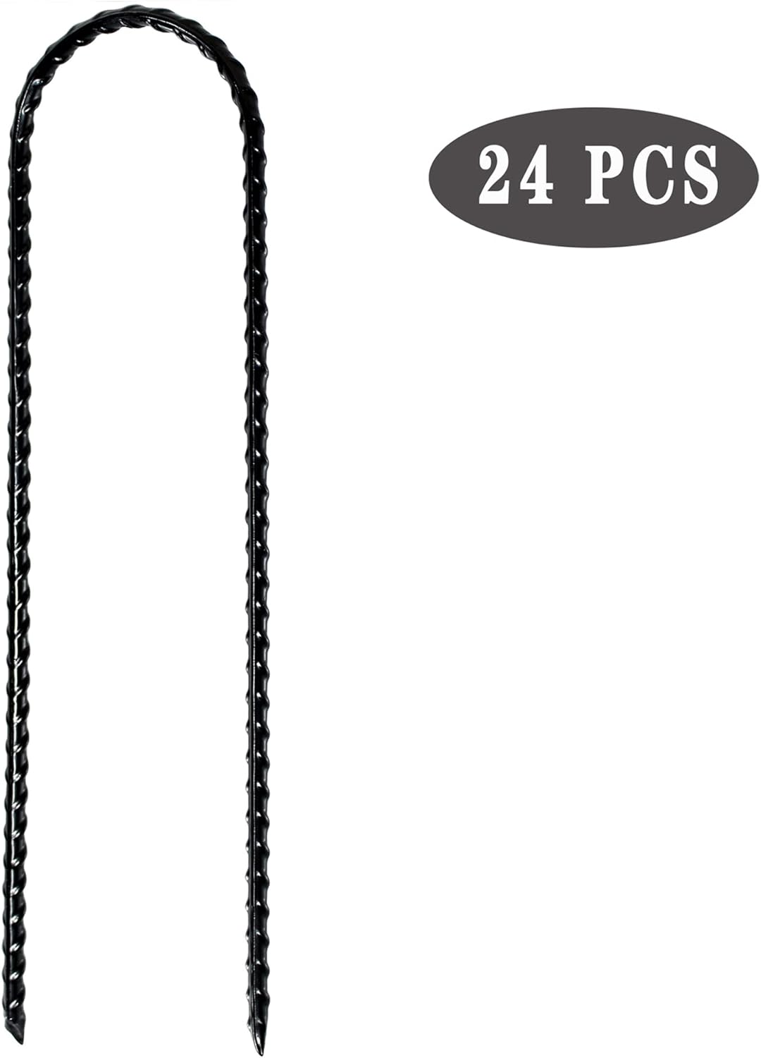 10"x2" Trampolines Wind Stakes Heavy Duty U Shape Galvanized Steel Trampoline Stakes Ground Anchors with Sharp End for Camping Tent, Garden Staples, Trampoline Pins (24)