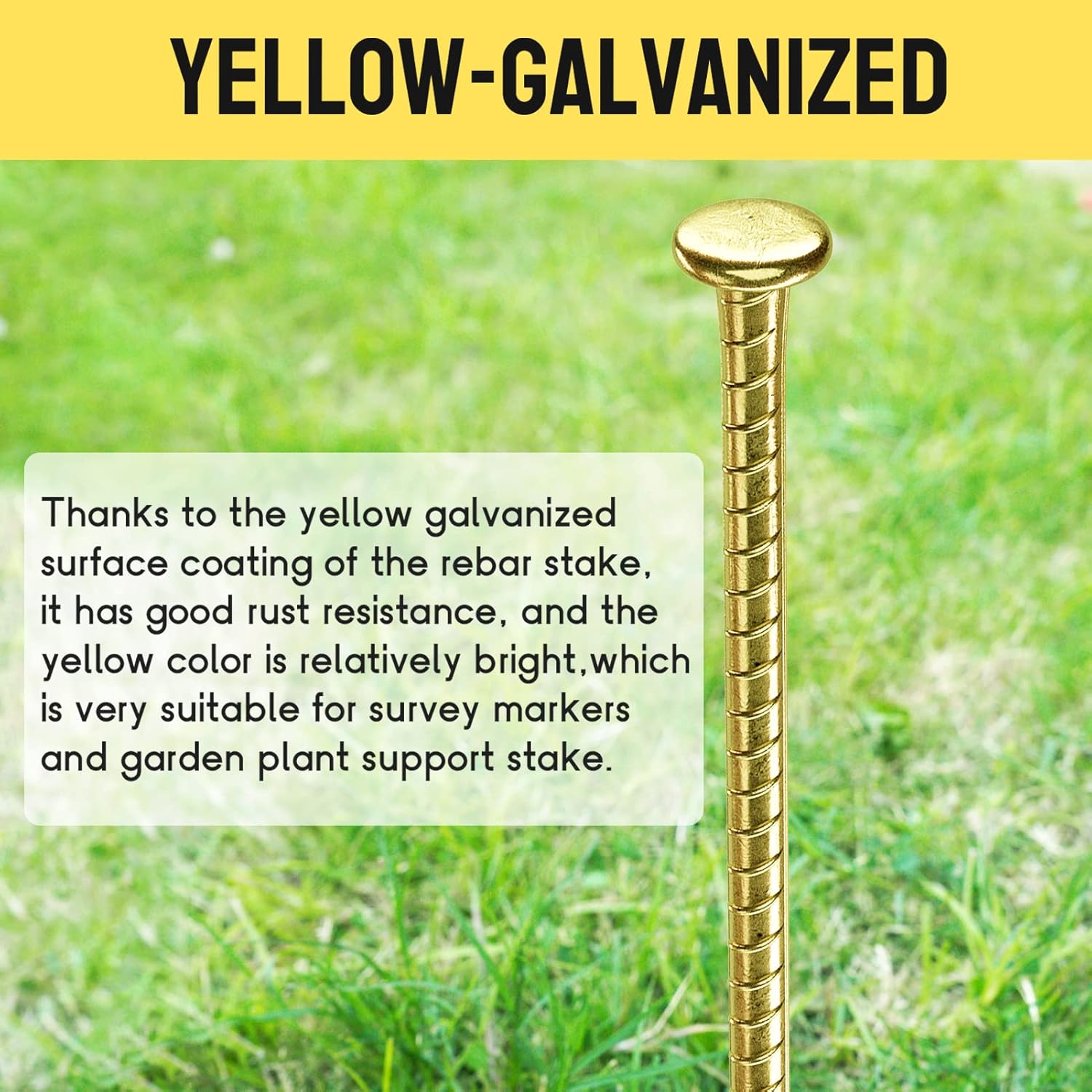 - YELLOW-GALVANIZED:Thanks to the yellow galvanized surface coating of the rebar stake, it has good rust resistance, and the yellow color is relatively bright, which is very suitable for survey markers and garden plant support stake.