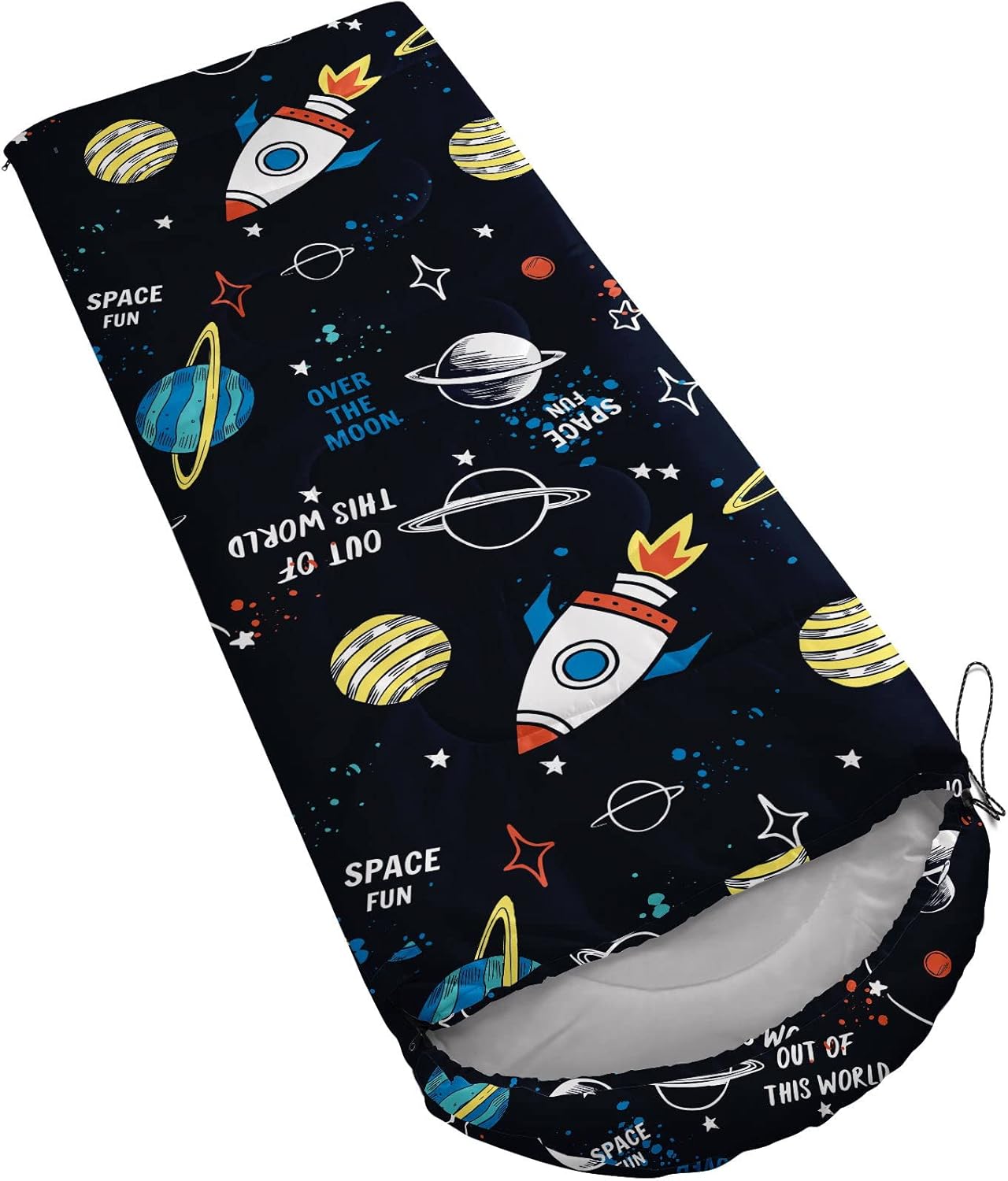 Kids Sleeping Bag for Boys Girls,Rocket Moon Print-Lightweight Warm Portable Outdoor Indoor-Waterproof Cold Weather Resistant Sleeping Bag for Camping Hiking