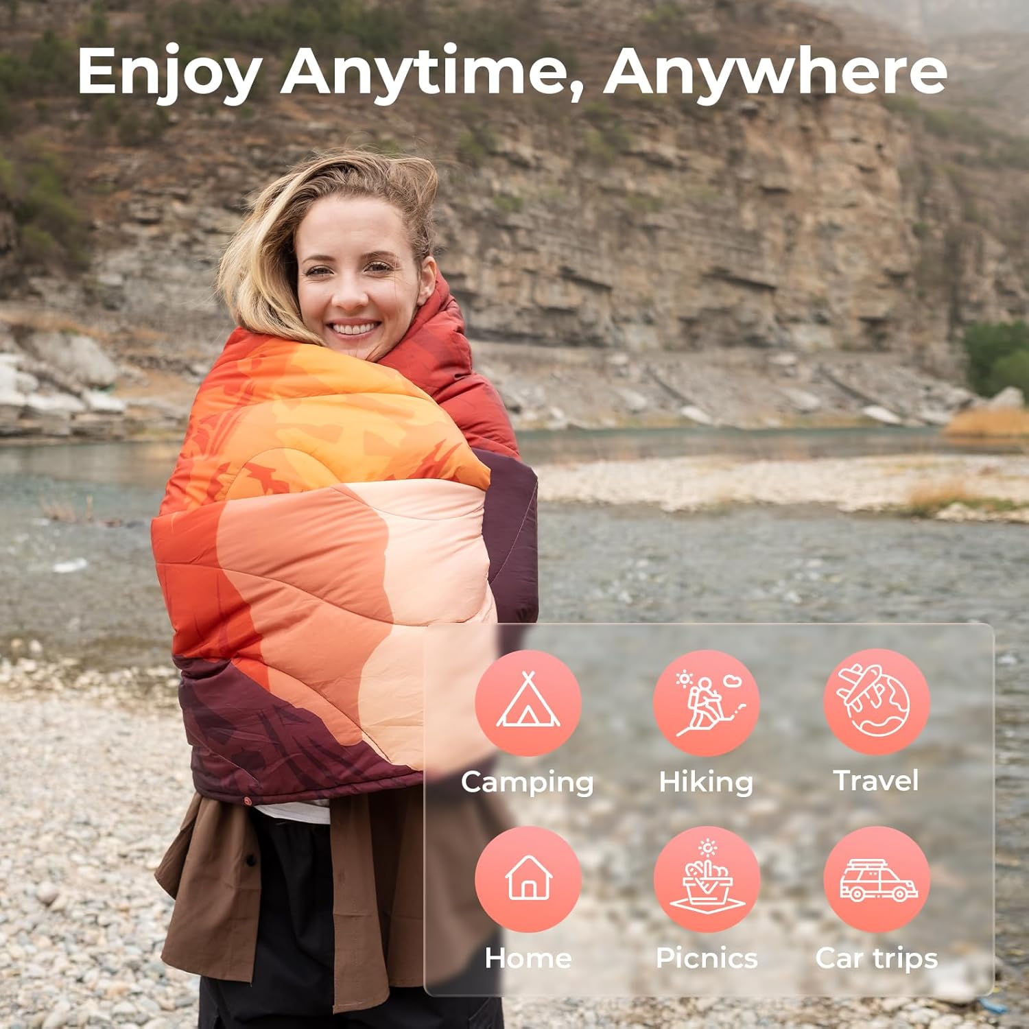- MULTI-FUNCTIONAL & GIFT - READY: More than just a blanket for camping, it also works as a picnic mat, travel pillow, emergency sleeping bag, or office throw. The tightly woven fabric resists pet hair and is machine washable for easy care. Lightweight and compressible, this camp blanket packable design fits perfectly into daily life and travel. Its stylish look and practical function also make it a thoughtful gift for family, friends, or outdoor lovers.