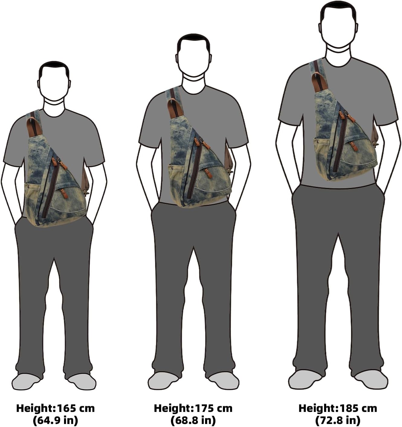 - [COMPACT YET SPACIOUS] Versatile canvas sling bag has plenty of rooms for gadgets, wallet, umbrella, sunglasses, water bottle and small laptop (up to 12.5"), etc. Easy access to small items, perfect for daily use or as a carry on luggage.