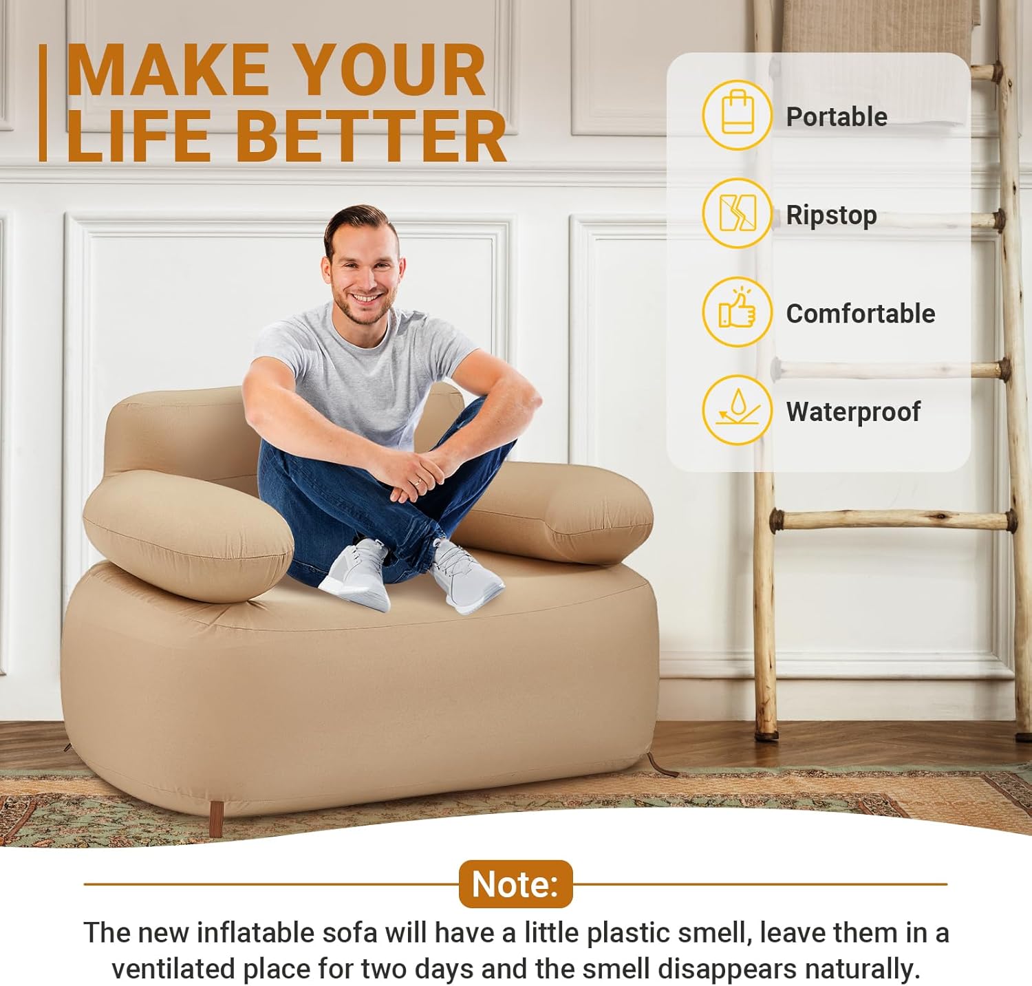 - 【Portable, Lightweight & Ready to Go】Despite its roomy size, this inflatable chair packs down to just 13.3 x 7.5 x 13.8 inches and weighs only 12.5 lbs. Comes with a 150D Oxford carry bag for easy transport. Ideal for solo travelers, hikers, campers, and outdoor enthusiasts who value comfort and portability.