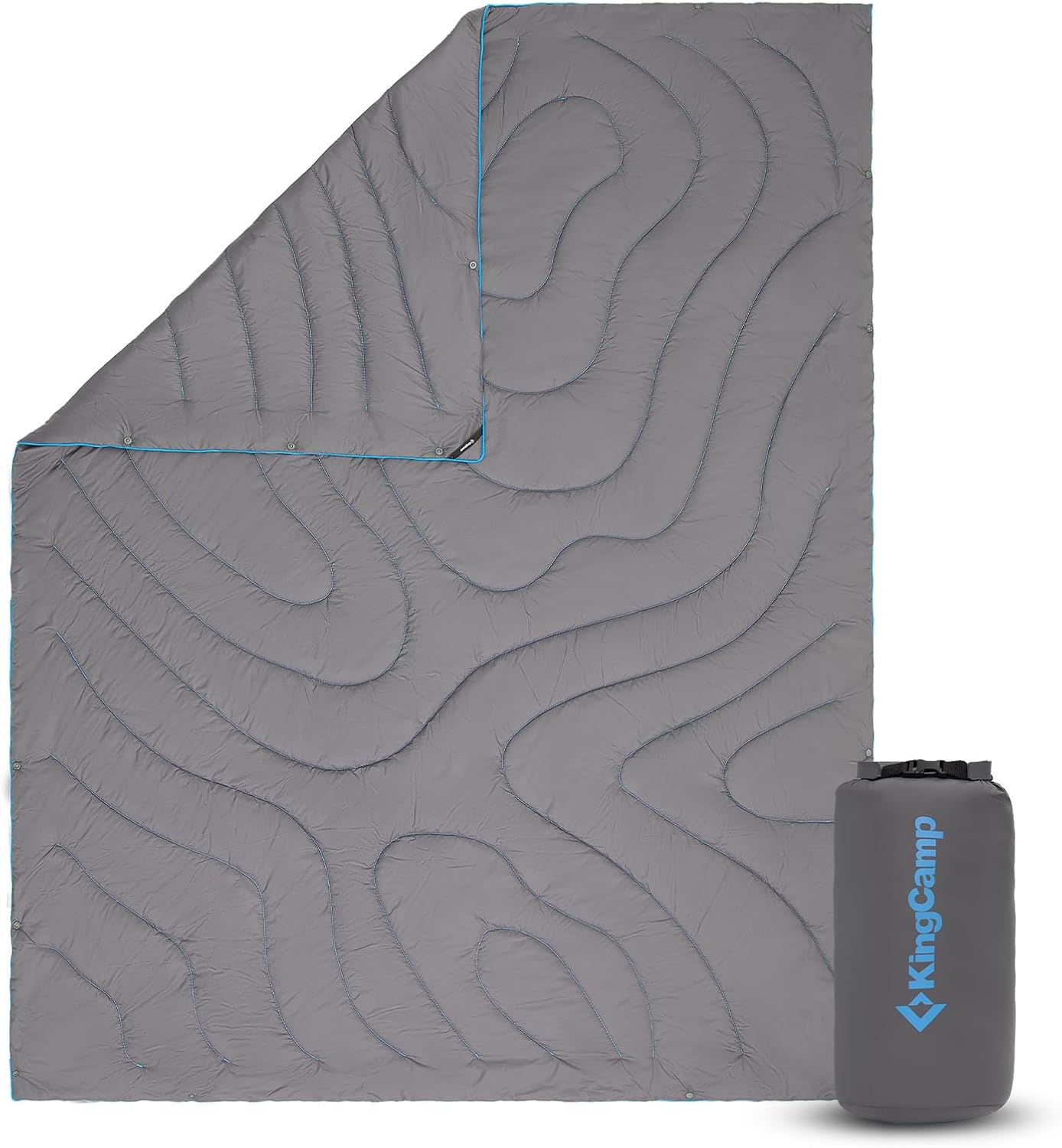 KingCamp Ultralight Camping Blanket Packable Down Alternative Puffy Wearable Blankets Weatherproof Warm Package Quilt with Snap Buttons & Corner Loops for Outdoor Travel Stadium (69" L x 53" W, Grey)