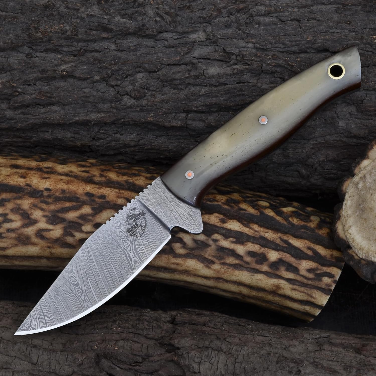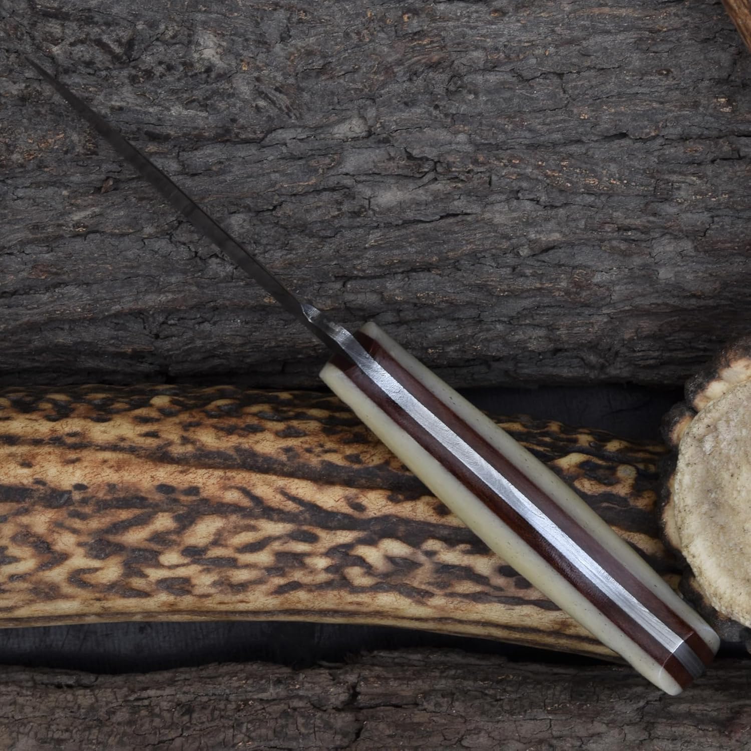 Knives Ranch Light Weight Fixed Blade EDC Knife | 6-1/2" Skinning Knife | Bone Handle | Horizontal Carry Cowboy Sheath (3196-B)