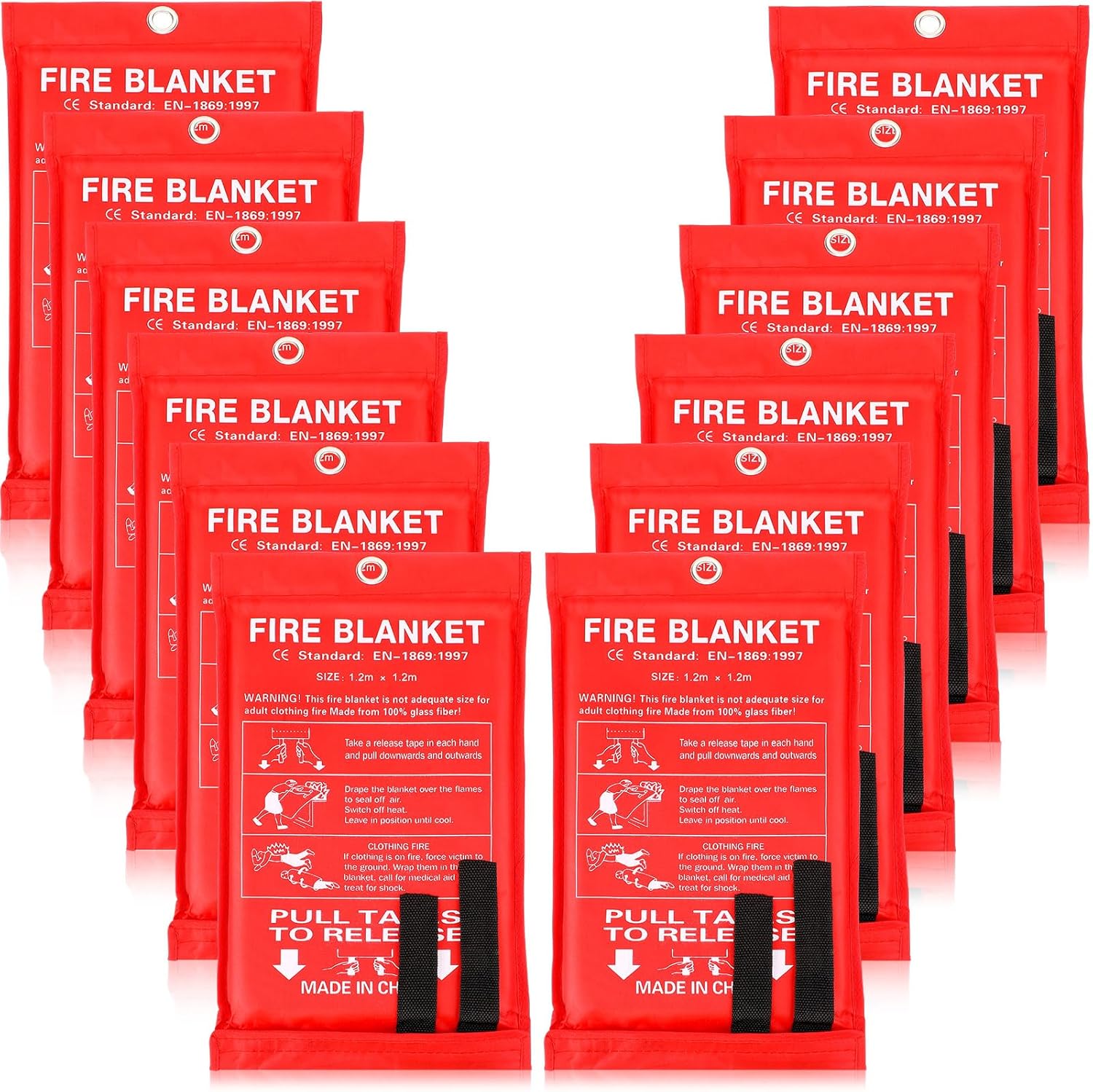 - Home Fire Blanket Kit: 12 pack fire blanket (47 x 47 inch); A good gift to your friend and family; It can easily be stored in kitchen counters in case of emergency, ideal for kitchen, fireplace, grill, car, office, camping and so on, use as emergency survival blanket or fireproof blanket for grill, safe to drape over adults, children, or pets