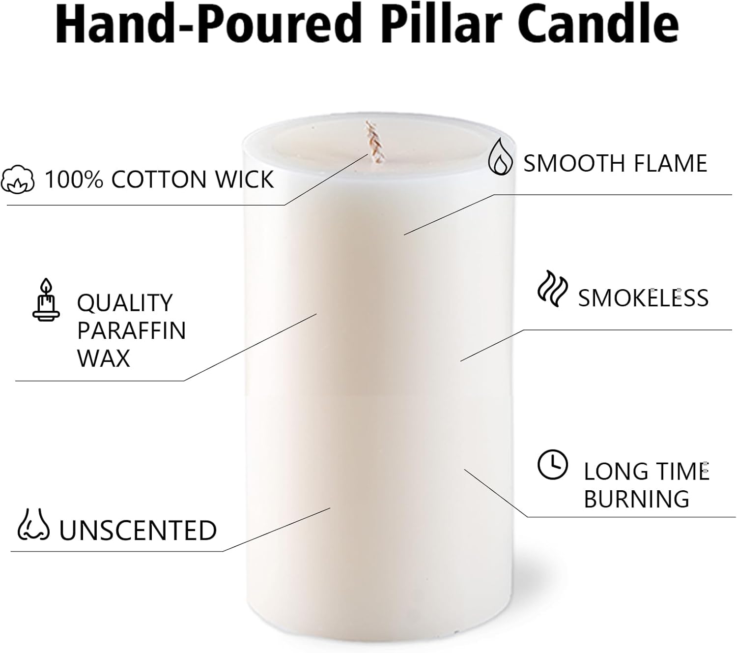 - 💗SMOKELESS AND DRIPLESS PILLAR CANDLES - MOSROAD pillar candles made from only premium paraffin wax with 100% cotton wicks.Our unscented pillar candles burn cleanly and evenly without smoke, drips, or flickering. Create a warm, relaxing, and welcoming atmosphere.