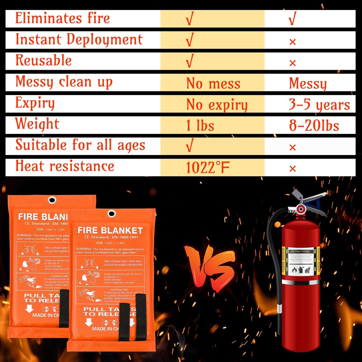 - Does Not Expire: unlike traditional extinguishers, the emergency blanket never expires; That means, unlike traditional extinguishers, it doesn't need to be replaced; Each home needs fire blankets, but we hope you never have to use it