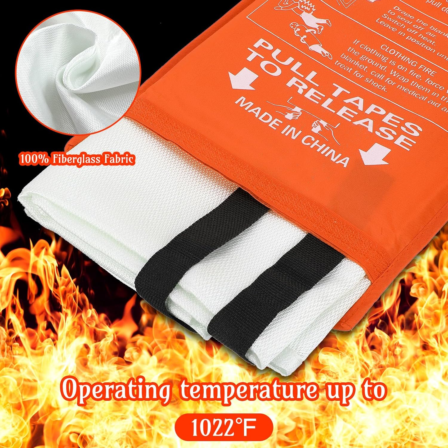 - Quality Material: fire safety blanket is made from quality flame retardant material, fireproof blanket is composed of an inner layer of fire retardant film and two outer layers of woven fiberglass fabric; They can isolate high temperatures up to 1076 degrees Fahrenheit