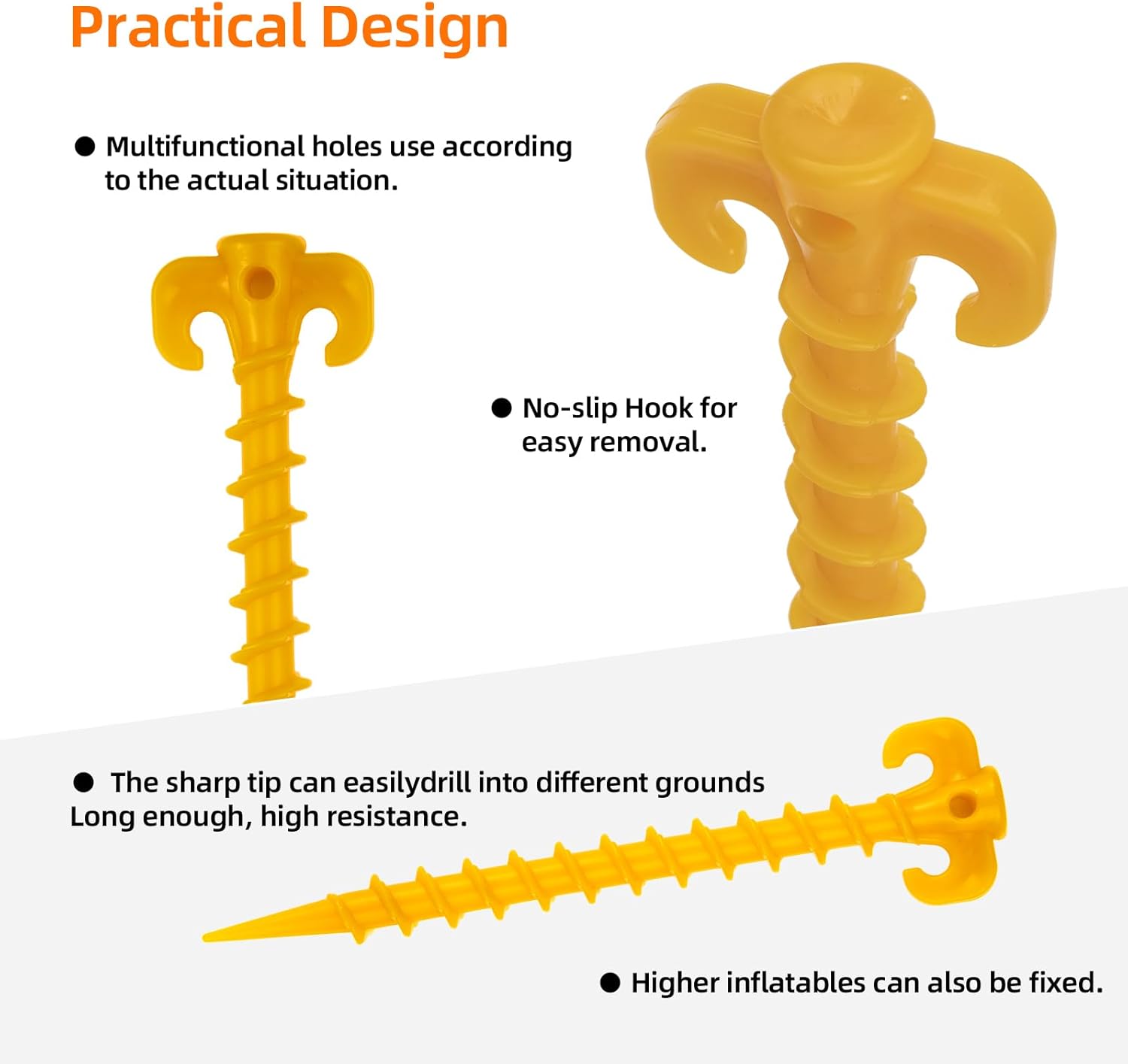 - SUITABLE FOR MULTIPLE SCENARIOS: In addition to being used to secure tents, canopies, tarps, rope racks, fences, awnings, and beach umbrellas, the nails can also be used to secure your child’s trampoline, support fixed plants, and secure Christmas giant balloon
