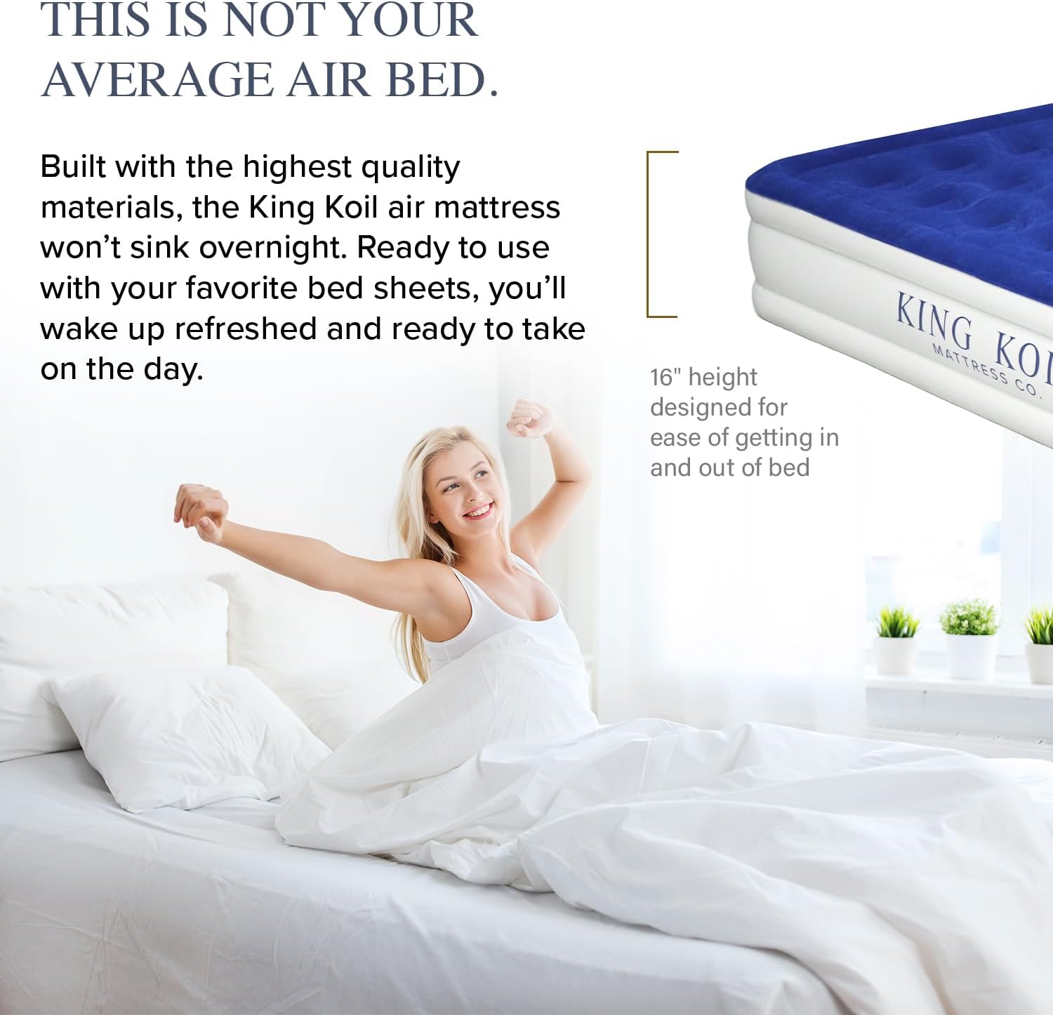King Koil Luxury Cal King Air Mattress with Built-in Pump for Home, Camping & Guests - King Size Inflatable Airbed Luxury Double High Adjustable Blow Up Mattress, Durable Waterproof & Premium