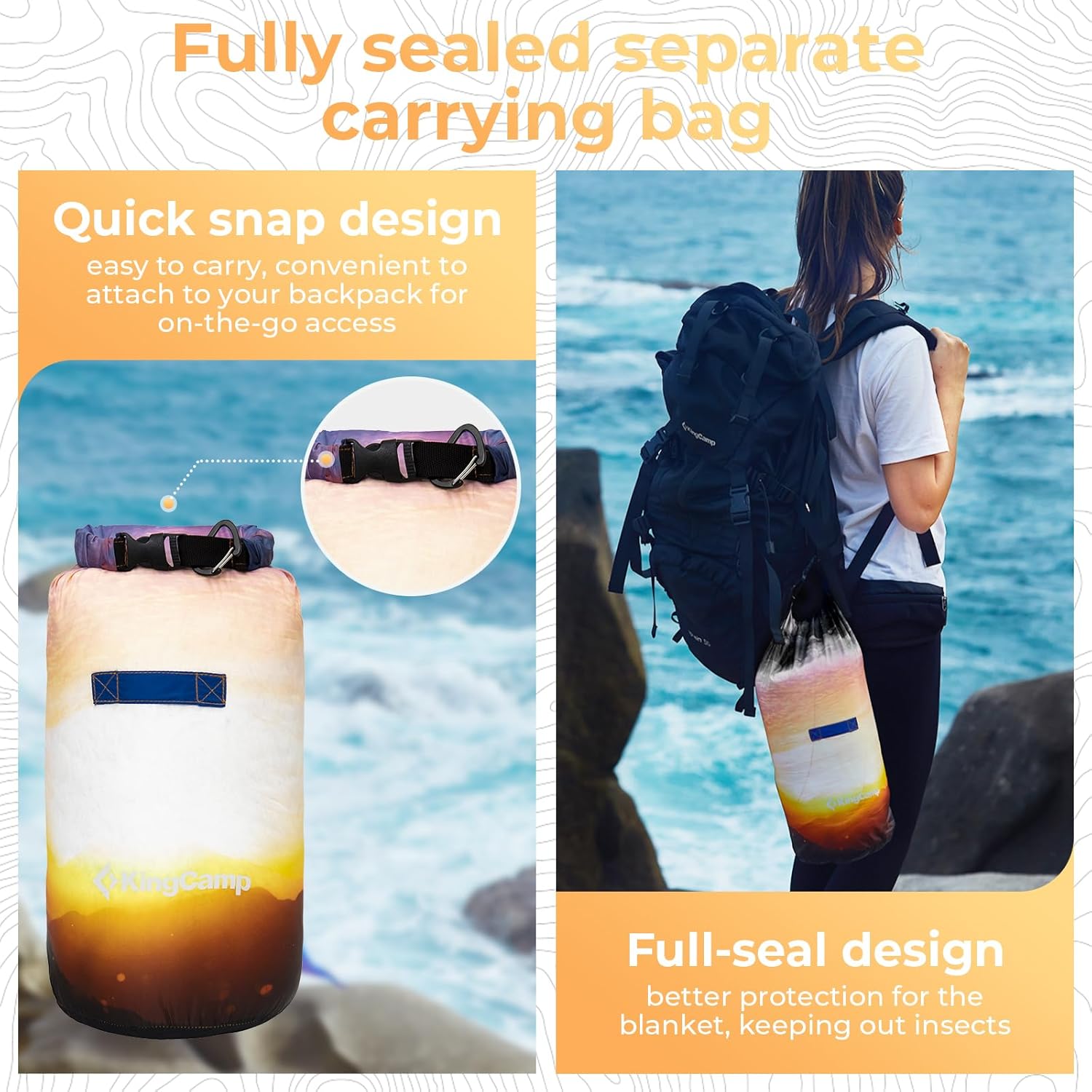 KingCamp Ultralight Camping Blanket, Packable Down Alternative Puffy Printed Wearable Blanket with Snap Buttons & Corner Loops Weatherproof Quilt for Outdoor Travel Stadium (79" L x 57" W, Sunrise)