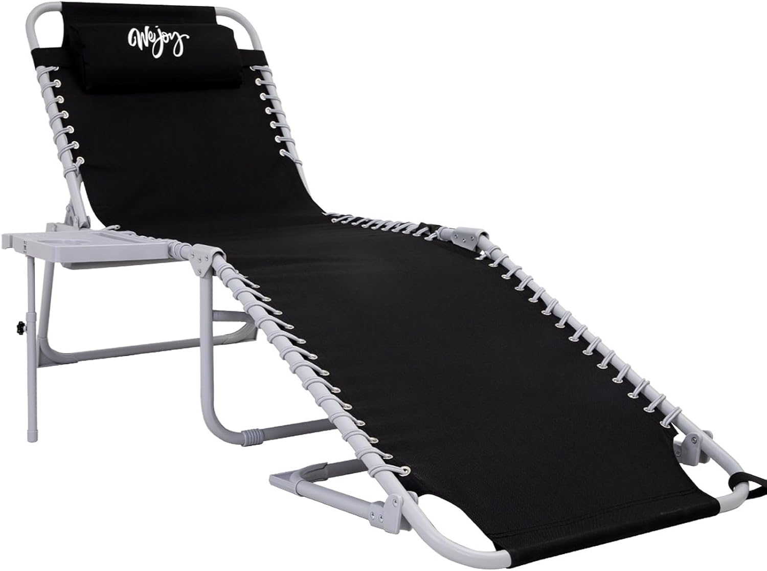#WEJOY Folding Recliner Lounge Chair with Side Table for Outdoor 5 Positions Adjustable Reclining Patio Camping Chair with Removable Padded Pillow,Side Pocket for Beach Pool Patio Sunbathing Lawn