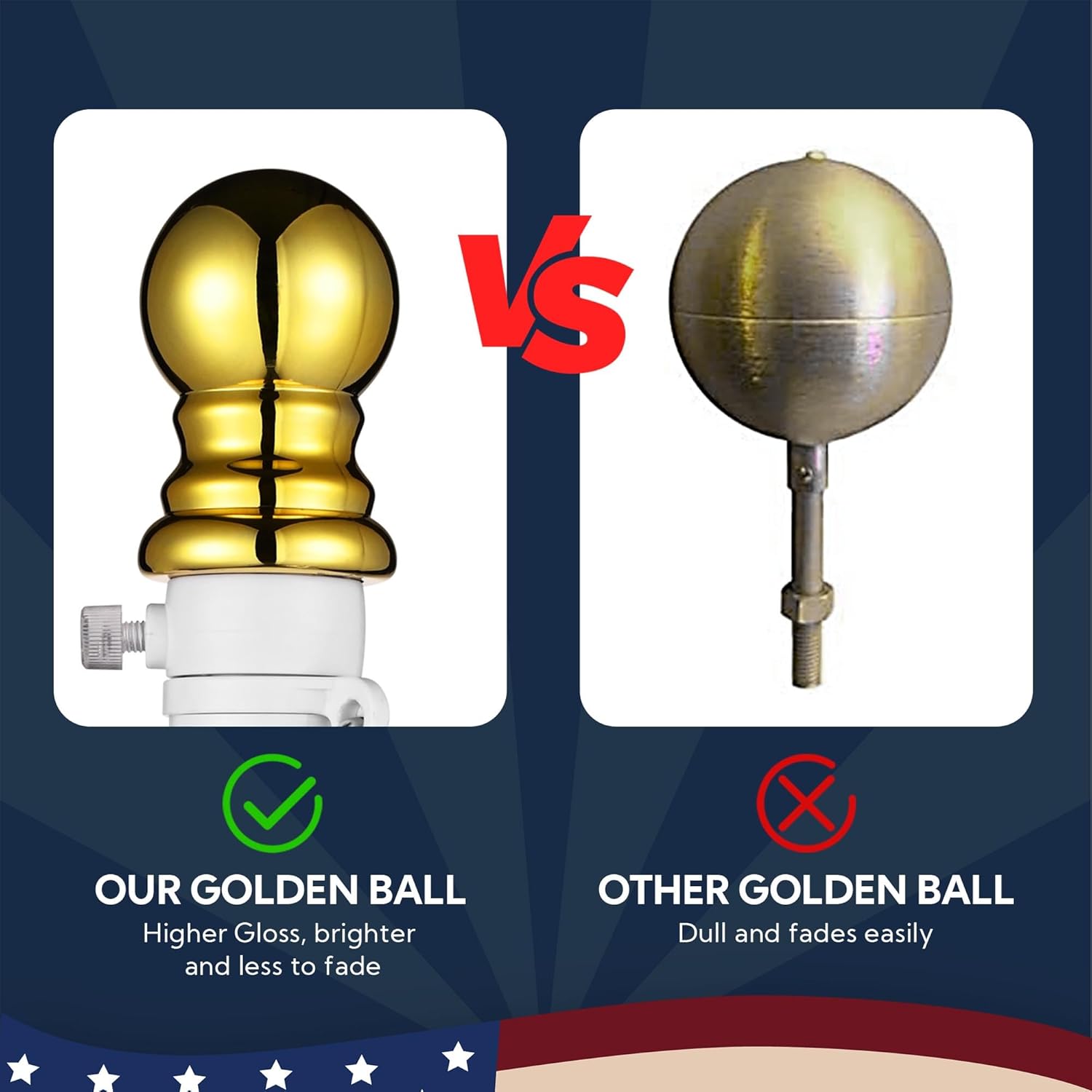 - [Anti-Tangling Design]: Comes with 2 pcs 360-degree rotating rings at the top pole to allow the flag to spin independently from the pole, preventing the flag from tangling on windy days.Material Flag: 100% Polyester; Import Designation: Imported