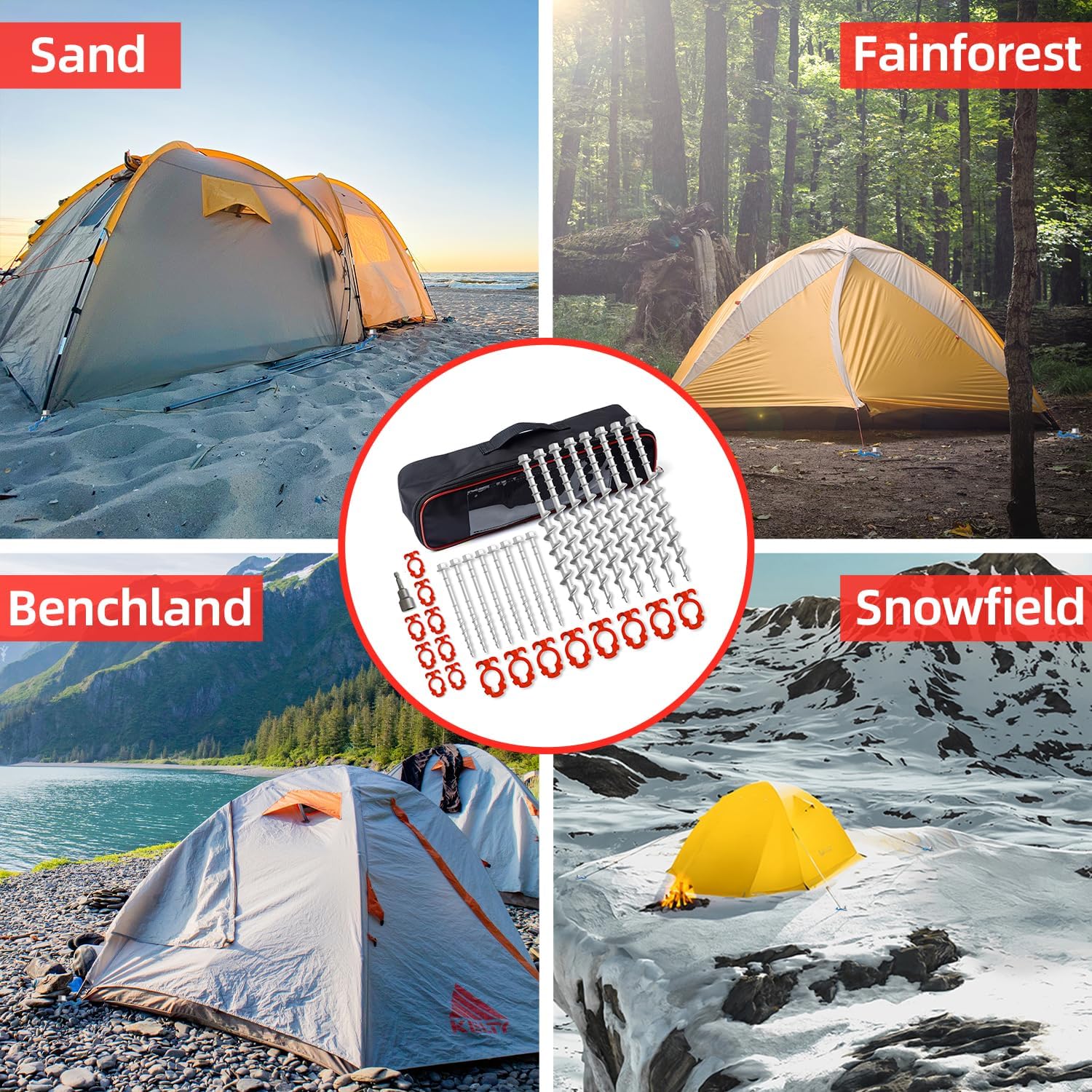 - Robust Stability: Equipped with large, pointed pegs for effortless penetration of tough terrain, these heavy-duty tent stakes provide strong support to withstand high winds and adverse conditions, whether in mud, sand, grass, or gravel