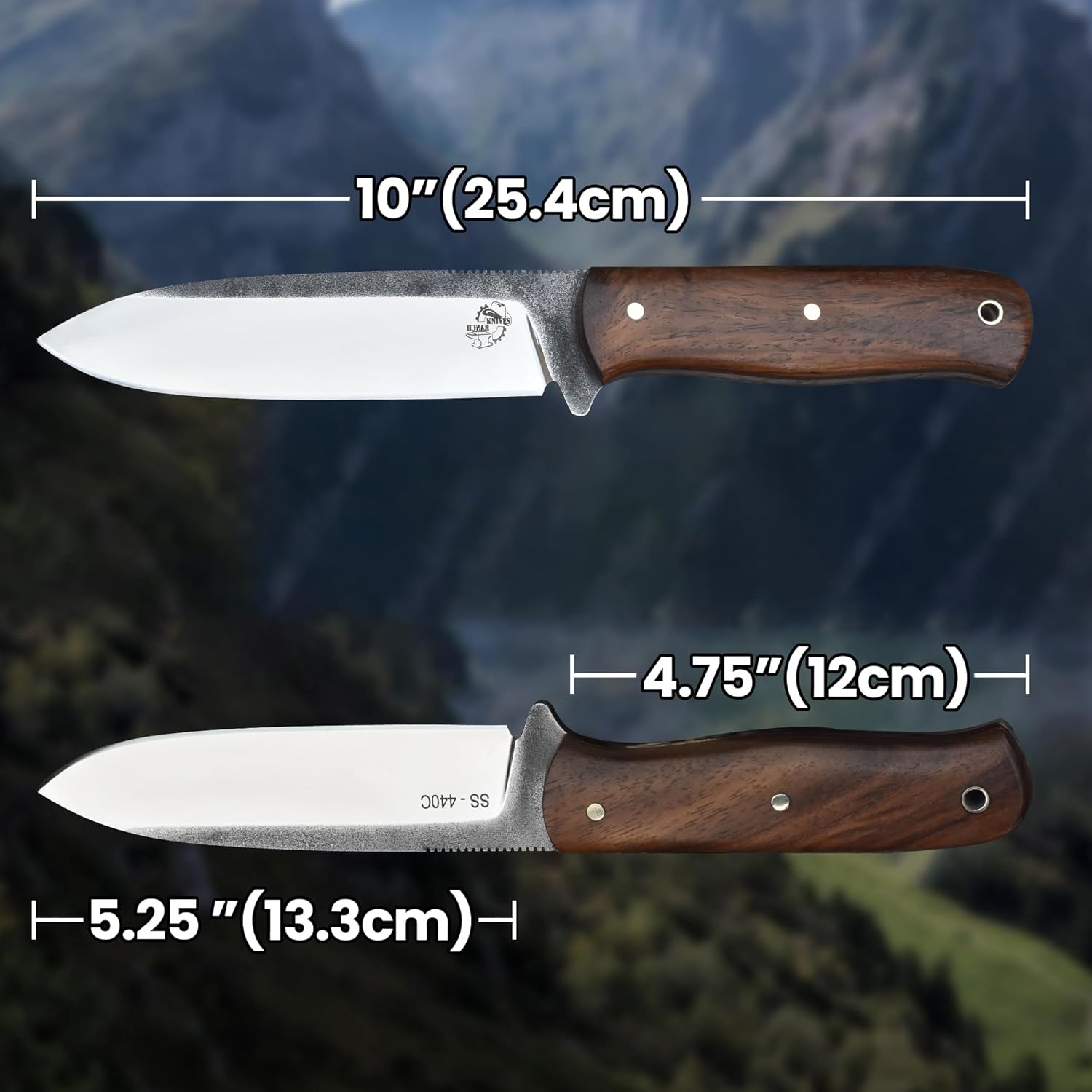 Knives Ranch 10" Bushcraft Knife - Full Tang - 59 Hardness - High Carbon SS 440C - Genuine Leather Sheath - Horizontal/Vertical Carry (Camper Pro 3091-SS-IRW)