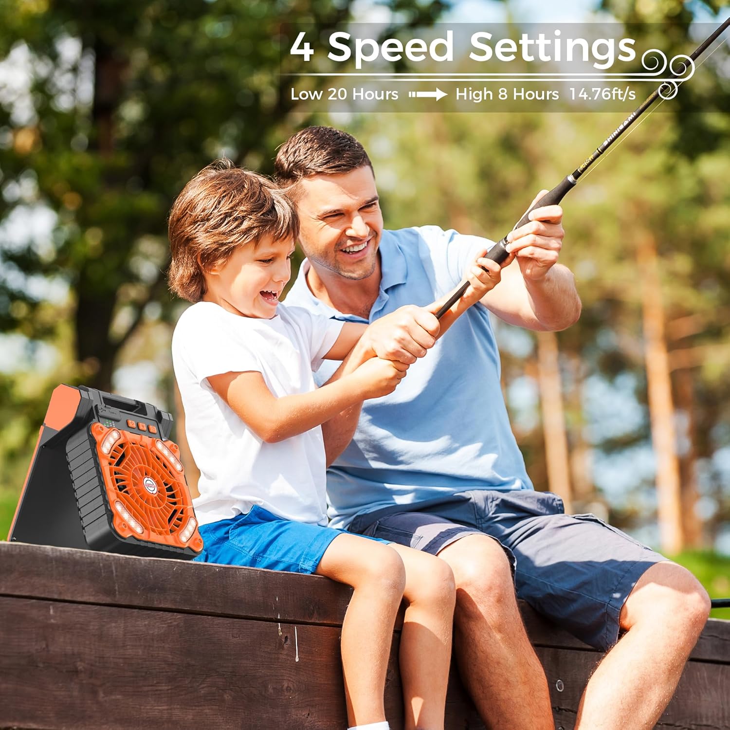 - Lightweight & Portable: Folding to just 2.8 inches thick and weighing 1.9 lbs, this outdoor fan is made of impact-resistant ABS, ideal for fishing, camping and travel