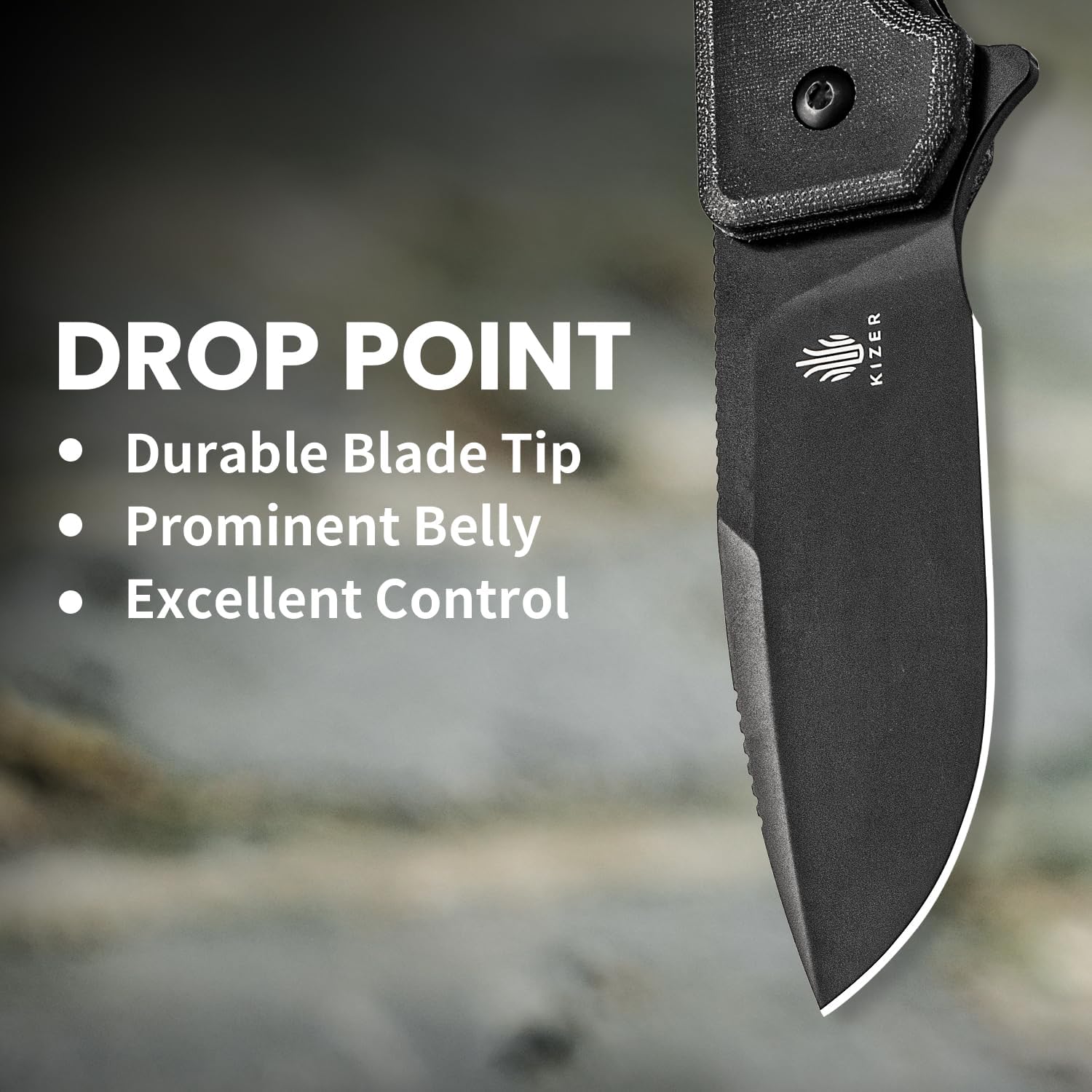 - 【Lightweight Design】Folding knife is paired with an exceptional Micarta handle, providing you with a sharp and refined tool. The lightweight design makes the Kizer knife weigh only 2.26 OZ, ensuring increased grip and comfort without adding unnecessary weight.