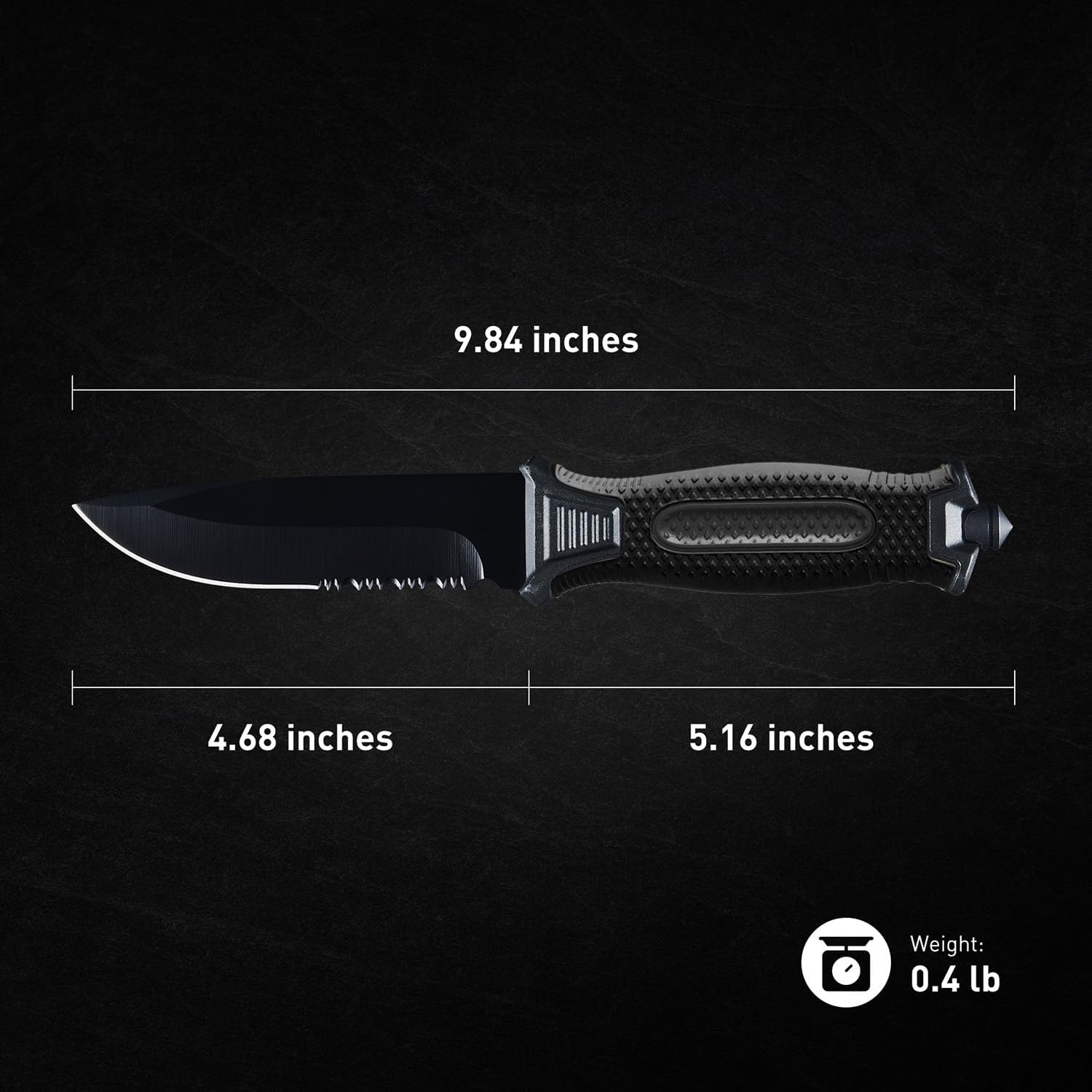 - Fixed Blade Knife: super sharp fighting knife, stronger than any hunting knife or bow and arrow knife. Total length: 9.84 inches; Blade length: 4.68 inches; Weight: 0.4 lb. It is equipped with a high-strength PP material sheath, which is easy to carry.