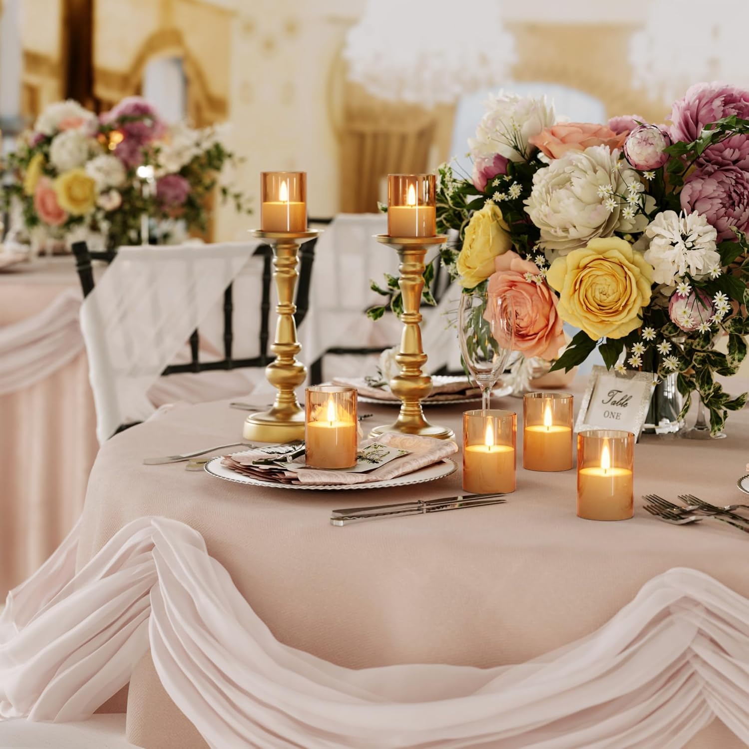 - 【Safety LED Flameless Candles】Enjoy these gold flameless candles with all the benefits of traditional candles and none of the negatives! No dripping hot wax, no smoke or worrying about falling asleep without blowing candles, don't worry about fire accidents, friendly for children and pets.
