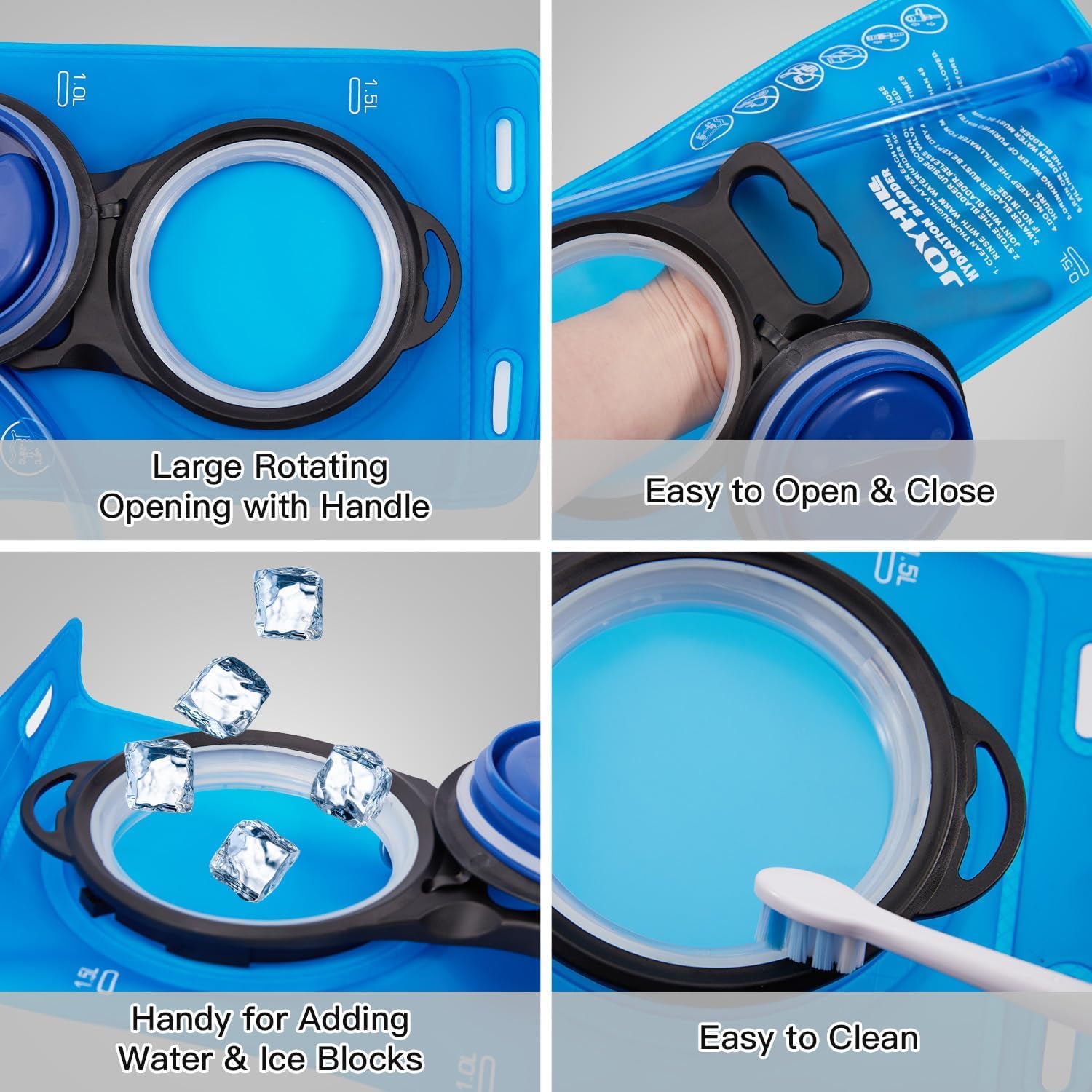 - Easy to Fill and Clean: The water bladder has a large opening with a diameter of 9 cm. You can easily drop ice cubes or fruit pieces into the water bladder by lifting the handle, or put a brush or a hand into the bag to clean it